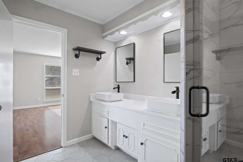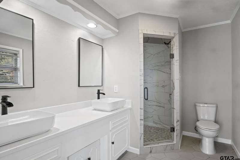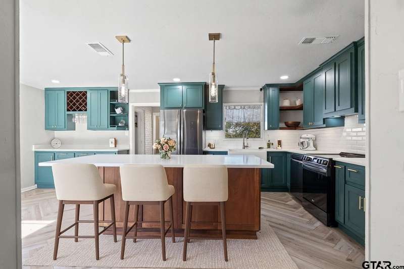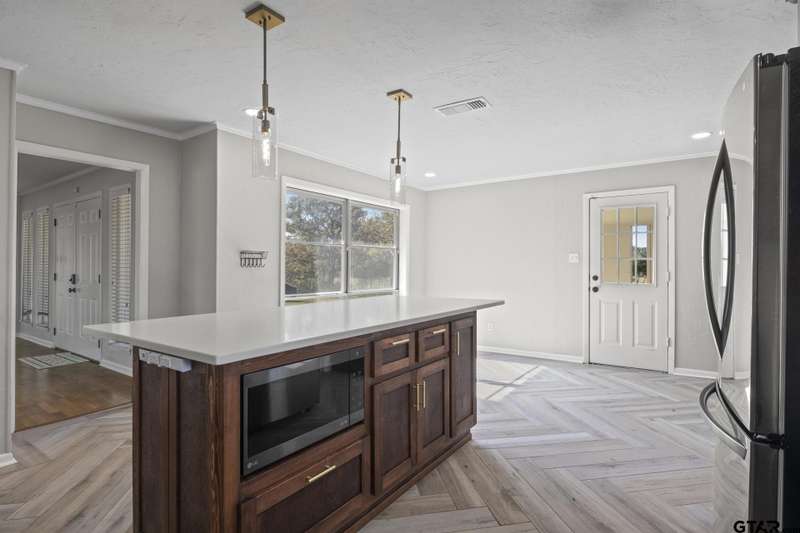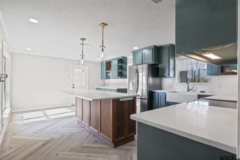 This home offers the perfect balance of location, space, and privacy, with close proximity to Pittsburg schools and great local parks. The exterior features crisp white brick and a beautifully maintained yard, providing a sophisticated first impression that flows seamlessly into the interior. Inside, stunning hardwood floors guide you through the open-concept living space, where a soaring cathedral ceiling, a dramatic wood-burning fireplace, and expansive windows frame picturesque views of the backyard. The beautifully appointed kitchen boasts plenty of counter space and a charming vibe, perfect for both cooking and entertaining. The home’s generously sized bedrooms are filled with natural light, thanks to wide windows that highlight the serene surroundings. The luxurious primary suite includes a private en-suite bath for added comfort and privacy. Situated on 5.86 acres, this property also features a pole barn and a large metal shop, offering plenty of space for hobbies, storage, or projects. Whether you’re looking for room to grow or a quiet retreat with easy access to all that Pittsburg has to offer, this home checks every box.