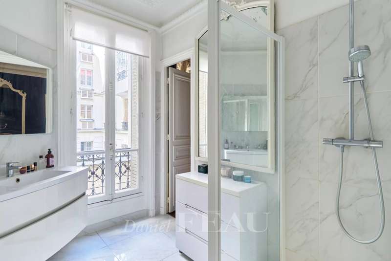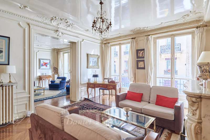 Jean-Baptiste Dumas/ Laugier neighbourhood. This particularly bright dual-aspect apartment offering 144 sqm of living space is on the 1st floor of a fine late 19th century building with a lift located in a peaceful street near the shops and Pereire Gardens. Oozing with period charm, it includes an entrance hall, a spacious double living/reception room, a dining room, two bedrooms, a bathroom, a shower room and a separate wc. The dining room could create a 3rd bedroom if required. Ample fitted storage space. With a storage room, two cellars and a compact maid’s bedroom. A parking space in rue Vernier may be acquired.