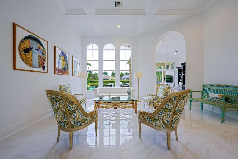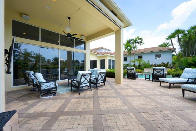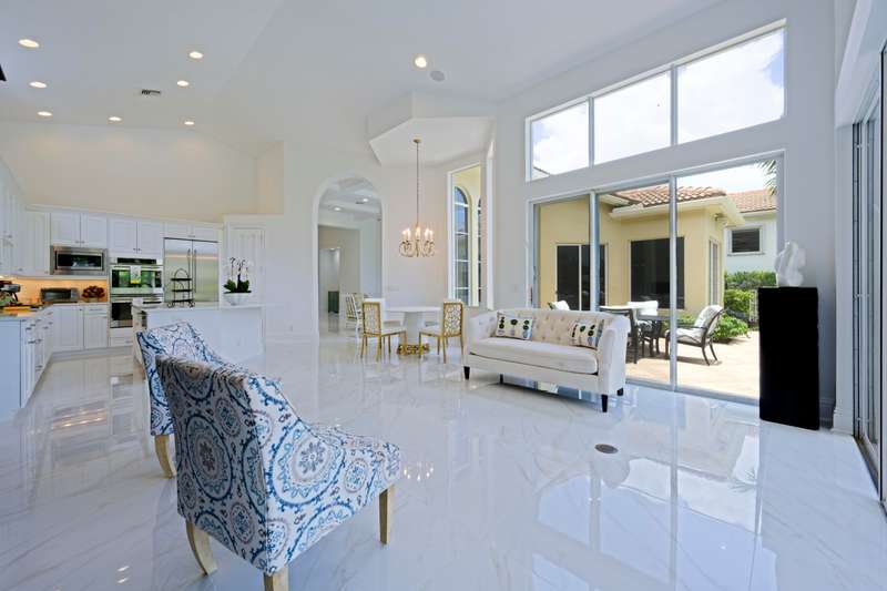 Come to see this light, bright, 1 story full golf home in the country club of Mirasol. The new porcelain floorsare throughout the living areas and new flooring in all the bedrooms. Freshly painted, redone kitchen with Italian appliances, new backsplash, and counter tops.Enjoy your tropical landscaped back yard with a large lanai and phantom screen which increases your living area to enjoy the lake view. The large pool and spa sits off to the side so there is plenty of space for tables, chairs and chaise lounges to enjoy the sun and view.