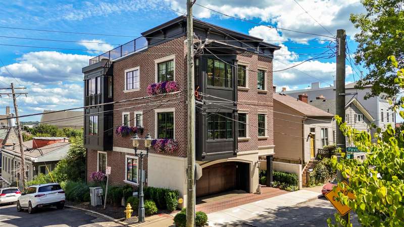 Magnificent Mt. Adams Living! Custom, luxury home with city & Ohio River views just minutes from downtown. Hardwood floors throughout with sleek Pella black windows. Chef's kitchen with Wolf range/oven, warming drawer, custom cabinetry & large island, plus butler's pantry with sink, dishwasher, microwave & storage. Living area with gas fireplace opens to covered terrace with retractable doors, heaters & outdoor TV. Elegant dining room with tray ceiling & lit storage; pub/bar with wine refrigerator & Ice maker. Four-stop elevator to all levels, including LL suite with private entrance, bath & kitchenette. Solar panels, 24K Generac generator, Platinum LEED certification (c.14 yrs tax abatement), EV-ready in the 2-car garage. Rooftop terrace with solar windows & window boxes with built-in watering system. Offers open for 48 hours. No escalation clauses.Pre-qualification letter needed before any appt will be confirmed.