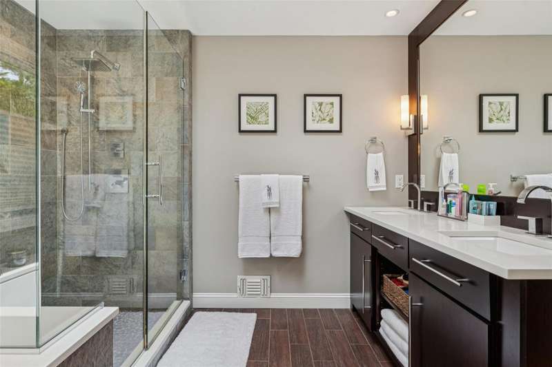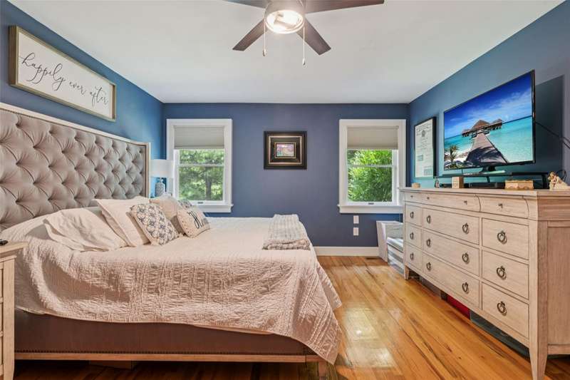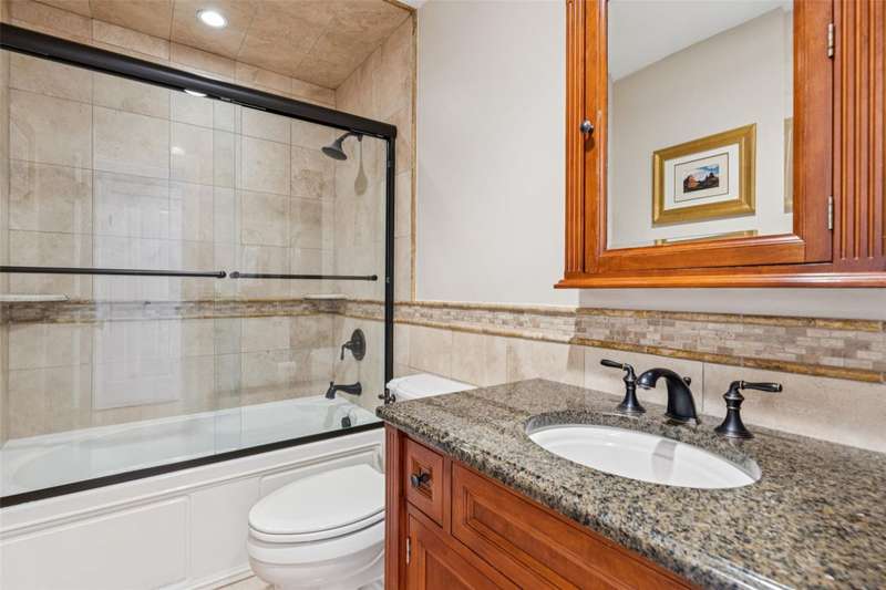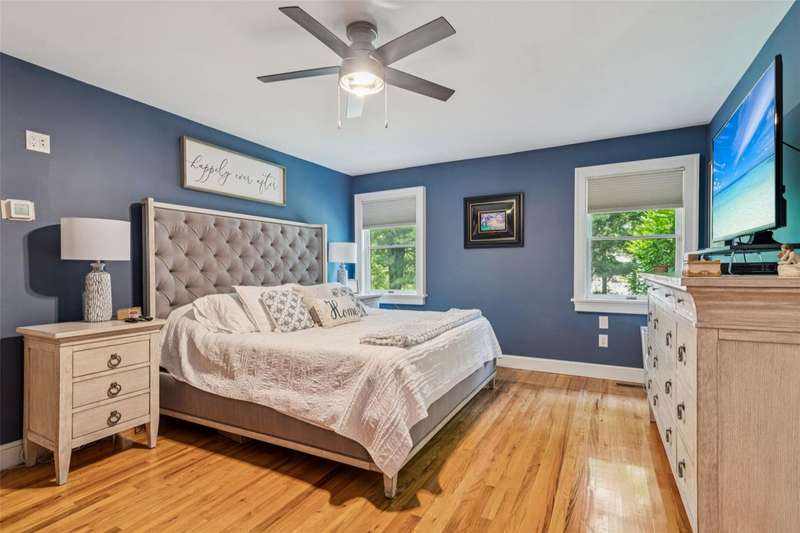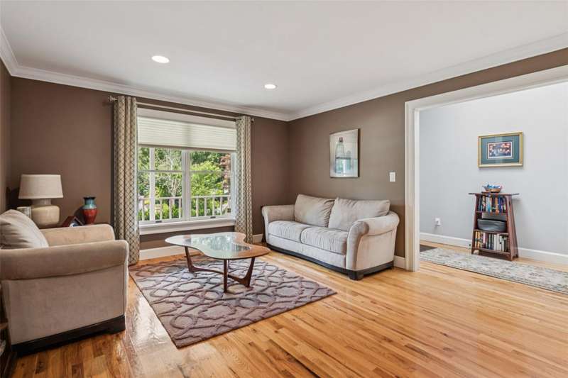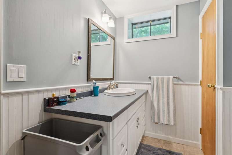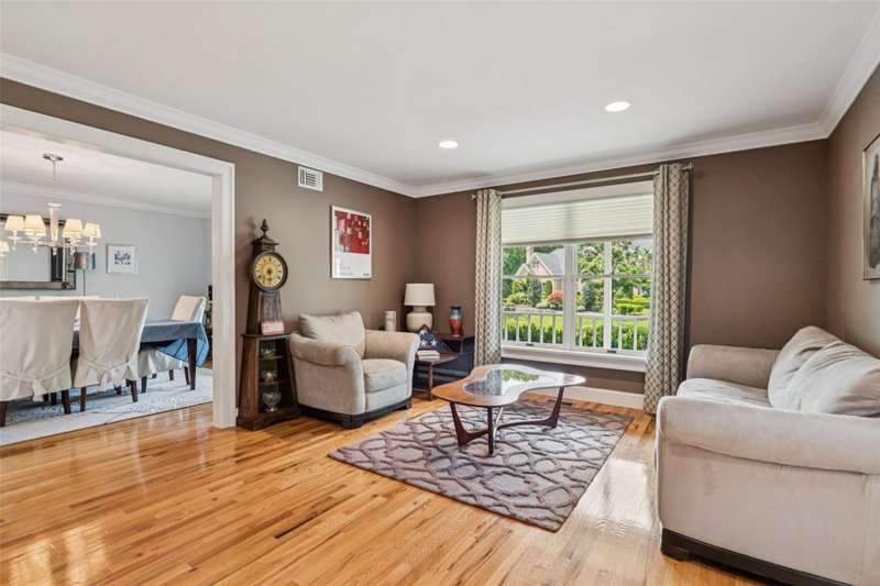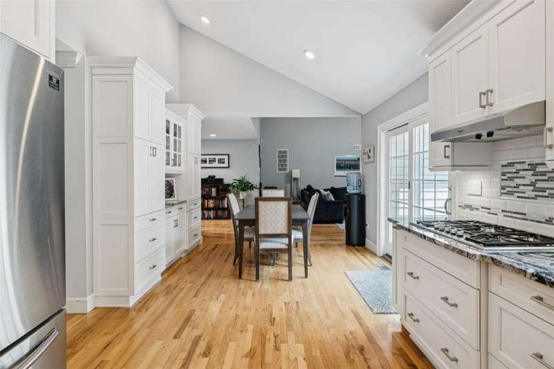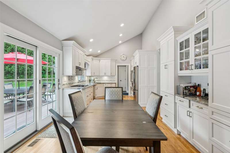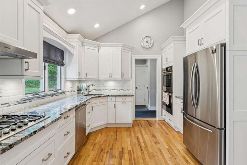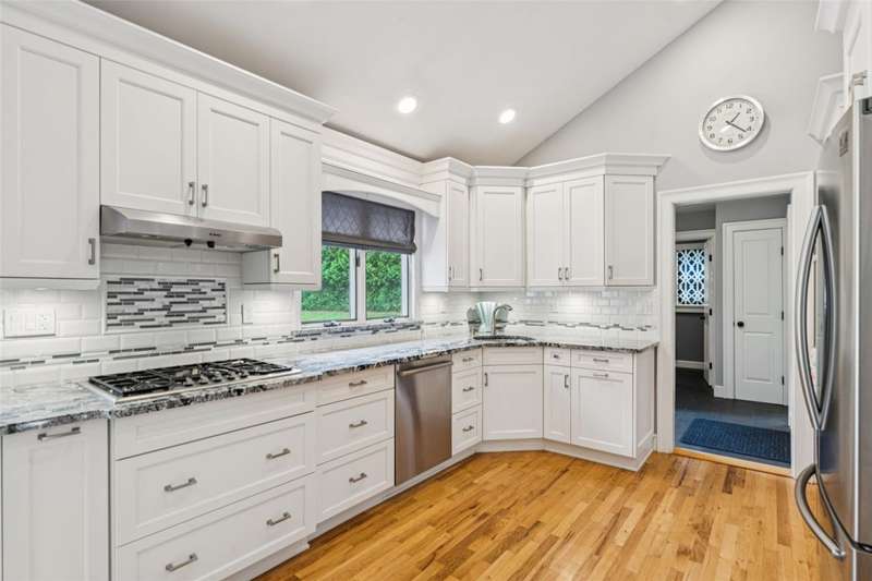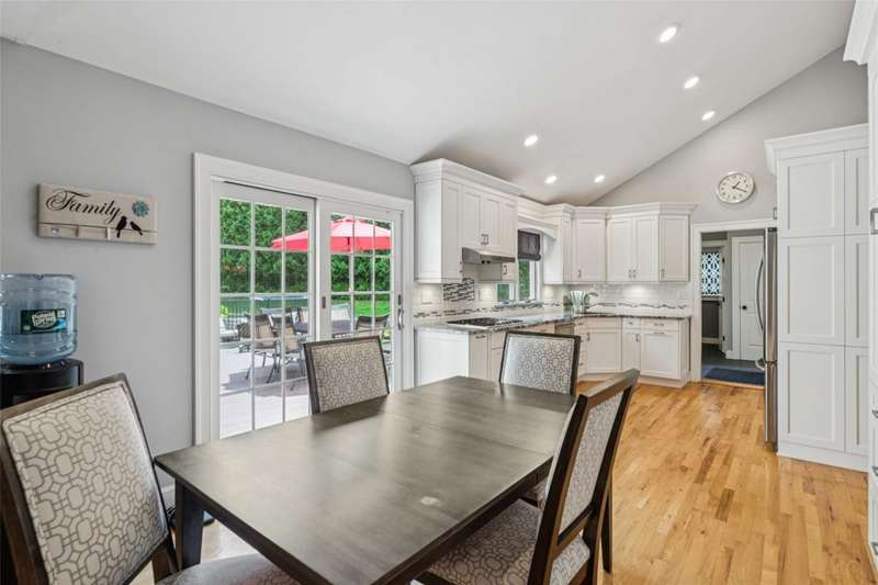 Welcome to 17 Wood Hollow Lane - a beautifully updated 5-bedroom, 2.5-bath ranch nestled in a quiet cul-de-sac in Northport's desirable Fort Salonga community. Located within the Kings Park School District and set on 1.1 private, park-like acres, this home offers a rare blend of comfort, functionality, and luxurious indoor-outdoor living.With over 2,800 square feet on the main level, the home is thoughtfully designed for both everyday living and entertaining. At its heart is a stunning open-concept kitchen with vaulted ceilings, granite countertops, stainless steel appliances, and rich wood cabinetry-seamlessly connecting to the dining area and large deck beyond. The adjacent vaulted den features a skylight, a cozy wood-burning fireplace and expansive windows that fill the space with light and frame serene views of the backyard oasis.The private primary suite is a true retreat, featuring a walk-in closet and a newly renovated spa-inspired bath with a soaking tub, glass-enclosed rain shower, and dual vanity. Four additional bedrooms and a stylish full bath offer flexibility for guests, home office, or multigenerational living.Additional highlights include a beautifully renovated powder room, laundry area, a full bath, gleaming hardwood floors, recessed lighting, gas heat, and a smart thermostat for year-round comfort. The partially finished basement offers even more living space, abundant storage, and access to the main level and attached two-car garage.Step outside to a fully fenced, resort-style backyard-complete with a beautiful in-ground pool, expansive patio, lush lawn, and a basketball court tucked to the side. Whether you're hosting summer gatherings or enjoying a quiet moment poolside, this outdoor space is sure to impress.Located just minutes from beaches, parks, golf, and the charming village of Northport, 17 Wood Hollow Lane offers the privacy you crave with the convenience you need-truly move-in ready and made for modern living.