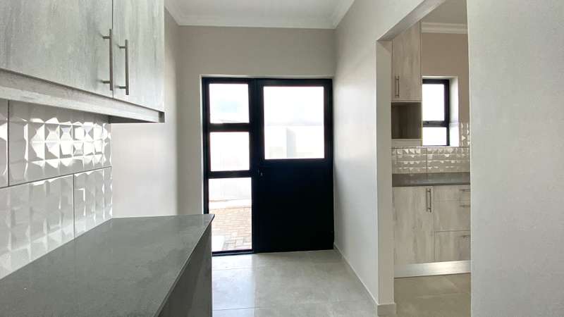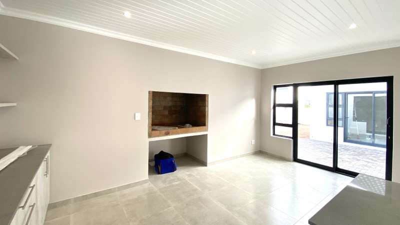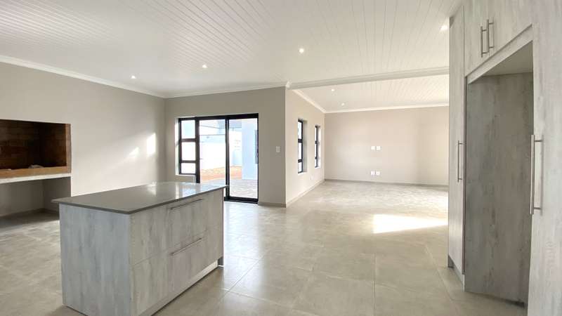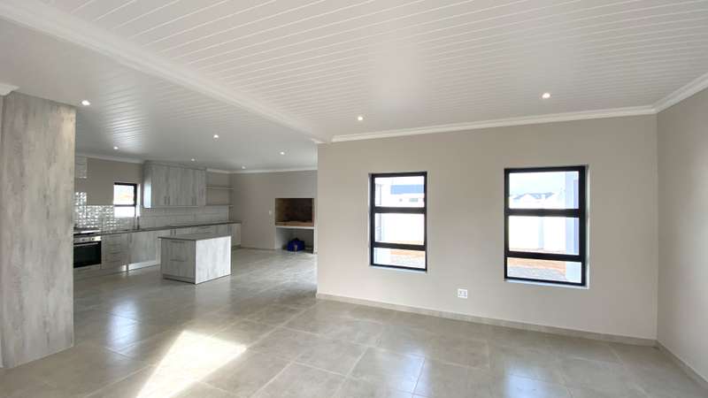 A West Coast Gem Awaits! Welcome to this brand-new, spacious, and luminous three-bedroom home, a true delight nestled within the private and secure Atlantic Sands Estate on the West Coast. Perfectly situated in Laaiplek, this property offers easy access to Langebaan, Saldanha, and is just 120km from Cape Town. Designed with a keen eye for both modern comfort and classic West Coast charm, the home’s stylish exterior is matched by its practical and opulent interior. The open-plan layout creates a welcoming atmosphere, ideal for both daily life and entertaining. Designed for Effortless Living Step inside and discover a seamless flow between the lounge, dining area, and kitchen, creating an expansive, airy feel. The gourmet kitchen is a chef's dream, featuring a separate scullery and a convenient pantry. Picture yourself preparing a meal or hosting a memorable braai in the generous indoor braai area, all while enjoying the serene sounds of the nearby ocean. The home also boasts an automated double garage with direct access, adding to the convenience. The luxurious main bedroom is a private retreat with built-in cupboards and a spacious en-suite bathroom. Two additional guest bedrooms, also with built-in cupboards, share a modern, full family bathroom. For extra storage, you'll find ample linen cupboards in the hallway. This home is also equipped with a solar water geyser, making it as efficient as it is beautiful. Ready to secure your piece of coastal paradise? Contact me today to schedule a viewing and take the first step toward your new West Coast lifestyle.