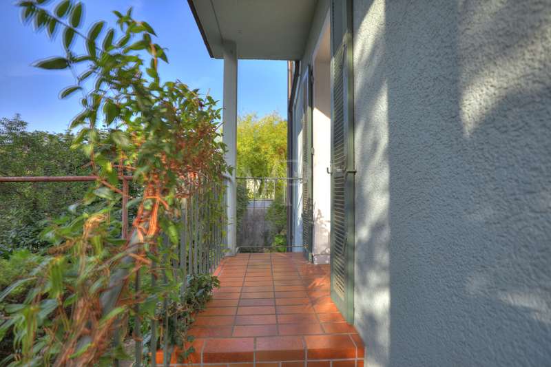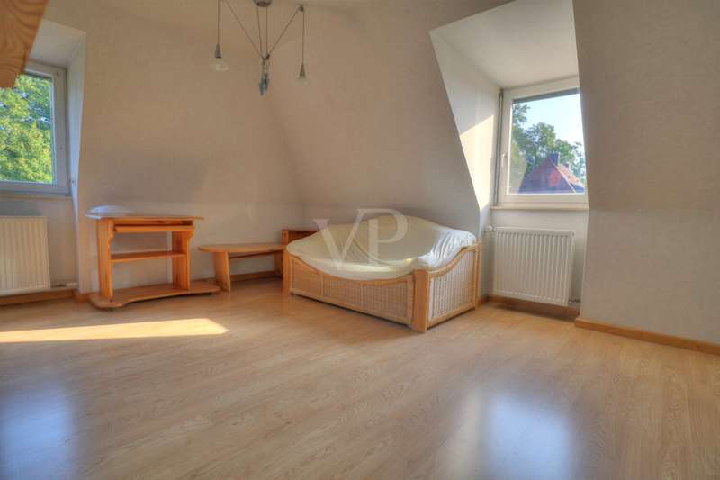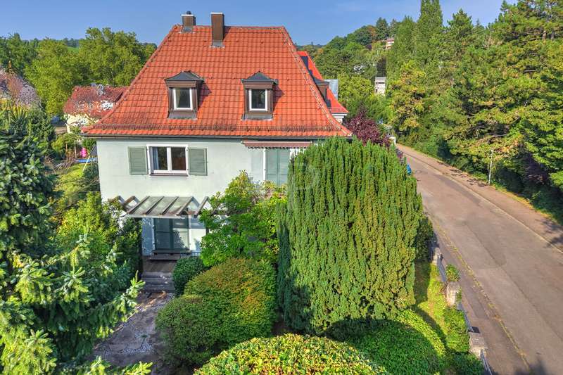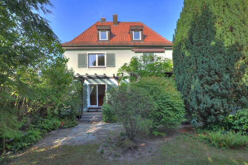 Living right next to Pfühlpark! This charming detached house from 1937 has been extensively renovated and combines historical character with modern living comfort. On a 512 m² plot, the property offers a living space of approx. 183 m² and impresses with its flexible room layout, cozy atmosphere and loving details. The spacious entrance area already conveys an inviting feeling of living. From here, you enter the long, light-flooded living/dining area, which combines both functions in one open space. Large windows provide plenty of natural light and create a connection to the outside area. From the living area, a large window leads out onto the veranda-style terrace, from which you can access the beautiful south/west-facing garden via a staircase. You can also access the same terrace from the dining area via a floor-to-ceiling window - allowing you to seamlessly extend both areas outdoors. From the hallway, as well as directly from the living and dining area, you can reach the separate fitted kitchen. From there, you have access to a small balcony - perfect for growing herbs or enjoying the fresh air in the morning. A classic guest WC completes the space on the first floor. Upstairs there is a daylight bathroom with shower and bathtub, an office with access to a balcony - ideal for enjoying your morning coffee in peace - as well as a children's room and a master bedroom. The spacious hallway not only offers additional space for chests of drawers or cupboards, but also opens out onto another balcony with a wonderful view of the greenery. The top floor can be perfectly integrated into a multi-generational or two-family concept: It has its own kitchen, a bathroom with shower, a separate WC and a large room that can be used flexibly as a bedroom, living room or hobby room. The basement offers two practical storage rooms, a boiler room and laundry room as well as a historic vaulted cellar - ideal for storage or wine lovers. Further features include a double garage and a gas central heating system plus tiled stove, which provide efficient and reliable heat. The property has been continuously maintained and extensively modernized in several stages. Particularly noteworthy is the major core renovation in 1982, during which almost all essential areas were renewed. This included the façade insulation, the complete electrical and plumbing installation, the replacement of doors and windows, new floor coverings, the staircase and the garage. In the years that followed, further value-enhancing measures were carried out, such as the re-roofing (1992), the installation of gas heating and the repainting of the façade (2004), as well as the renovation of the garage and entrance gates, the exterior railings and the fence system (2008/2009). This house combines the charm of past decades with modernized technology, plenty of space and flexible usage options - ideal for families, multi-generational households or anyone who appreciates spacious living with history.