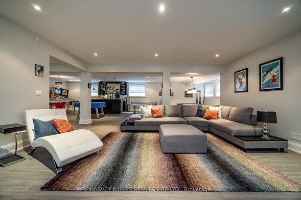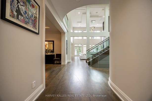 Welcome to Quatorz Sulgrave, a custom luxury home in the prestigious St. Andrews neighbourhood of Toronto. Completed in 2014 by Rostek Homes with classic architecture by David Wooldridge and modern transitional interiors by CMID, this residence offers approximately 7,900 Sq. Ft. of total living space, including ~ 5,000 Sq. Ft. above grade, on a 90' x 125' lot. Designed with timeless elegance, the Indiana limestone façade and professionally landscaped gardens set the stage for refined living. Inside, 10' ceilings, oak hardwood floors, Savaria elevator, applied mouldings, and custom millwork showcase exceptional craftsmanship. The main floor blends formal and family living with a living/dining room, study, and an open-concept chefs kitchen featuring Sub-Zero/Wolf appliances, quartz waterfall island, butlers pantry, and breakfast area overlooking the two-storey family room with soaring 20' ceiling and linear fireplace. The upper level offers 4 vaulted bedrooms with ensuites, including a serene primary retreat with fireplace, dressing room, and 7-piece spa-inspired ensuite. The finished lower level includes a recreation room, games room, wet bar, fifth bedroom/gym, cedar closet, arcade, and cold cellars. Outdoor living is enhanced with stone interlock, outdoor kitchen/wet bar, fenced yard, and standby generator. Additional features: 4-car built-in garage with EV charger, 6-car drive, smart home wiring, built-in speakers, alarm and camera system, and dual furnaces & A/C. Ideally located near Bayview Village, The Granite Club, Highway 401, and some of Toronto's top private and public schools. A rare opportunity to own a custom-built St. Andrews luxury home of enduring style, exceptional quality, and unparalleled convenience.