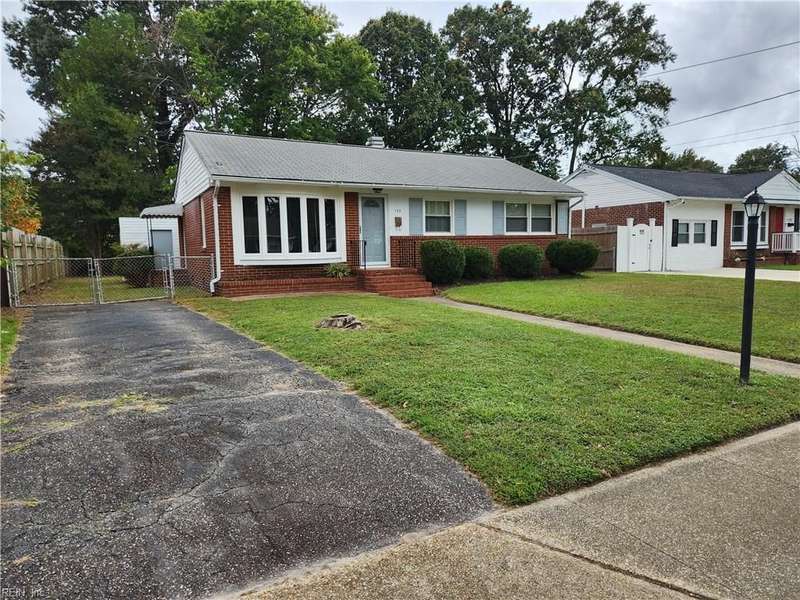 Cute brick rancher with fresh paint; well maintained and move-in ready! Great for first-time home buyers or investors. Private fenced backyard. Porch on backyard patio can be screened. All appliances convey. New washer/dryer. Low maintenance exterior, with brick, vinyl siding on gables, and all-vinyl windows. All closets cedar lined. Conveniently located near schools, shopping, employers and military bases, with easy access to I-64 and I-664.