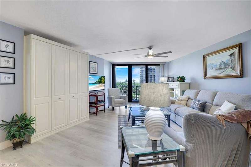Welcome to your sun-kissed retreat in South Seas, the only Marco Island community with both beachfront living and bay-side boat docks. This stylish third-floor residence pairs postcard-worthy sunset and tropical garden views with a thoughtfully updated interior. The split 2-bed, 2-bath layout features a 2025 AC, full-impact windows and sliders, a walk-in closet, and a clever Murphy bed that tucks away to open the living area. Step onto the oversized balcony-perfect for cocktails, sea breezes, and dolphin-spotting. The tower has just completed a top-to-bottom renovation: designer lobby, chic social and meeting spaces, refreshed hallways, upgraded elevators, Amazon-hub mailroom, enhanced security, and a modern fitness center. Outside, beautifully manicured grounds lead to a resort-style pool, tennis and pickleball courts, shuffleboard, bike storage, BBQ picnic pavilion, and on-site management-all within a 24-hour guard-gated enclave minutes from dining and boutiques. Whether you're strolling straight onto the sugary sand or casting off from the private docks for a day on the water, this coastal haven delivers the quintessential Marco Island lifestyle.
