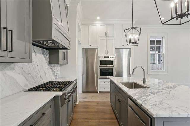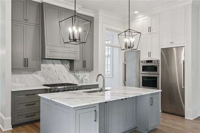 Experience the quintessential New Orleans lifestyle at 3324 Camp Street, a stunningly renovated home featuring the charm of its 1890 Victorian origins and the luxury of modern design. This four-bedroom, three-and-a-half-bathroom residence places you steps away from the best of the Garden District, renowned coffee shops, vibrant bars, top-tier restaurants, and endless boutique shopping. Built with modern convenience in mind, the home is detailed throughout with oversized baseboards and crown molding for a polished, high-end feel. The open-concept design flows seamlessly to the backyard, which is shaded and ideal for weekend lounging or puppy play, with ample space to add a pool. The kitchen boasts a Dacor appliance package for chef-level performance and bright, clean finishes perfect for entertaining. Ascend the white oak stairs to the Primary Suite, where the bath features a luxurious rain shower and sleek, vertical slat tile with subtle wood-grain detailing for a true spa vibe. The Boutique-Style Primary Closet offers incredible organization, including dedicated jewelry storage, accessory cabinets, and a shoe gallery display. Enjoy endless hot water with a tankless water heater, energy-efficient windows for comfort and savings, and a convenient wet bar. The rare, private driveway accommodates two cars in this sought-after neighborhood. This home delivers the best of both worlds, the charm of historic surroundings with the ease of a new 2024 renovation. A true gem where thoughtful finishes and textures just work.