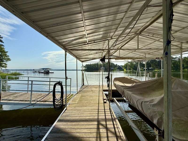 Lake Eufaula Living at Its Finest! Furnished!! Welcome to your dream retreat on the water! This charming 3-bedroom, 2-bath home offers the perfect blend of comfort, style, and lakefront serenity. Enjoy stunning views and direct water access from your very own covered dock—complete with a boat slip, lift, power, and water—ideal for boating, fishing, or just soaking in the peaceful surroundings. Inside, you'll find beautiful hardwood floors, an abundance of natural light, and an inviting open layout perfect for entertaining or unwinding. The spacious kitchen flows into a bright living area. Wake up in the master bedroom to views of the lake. Whether you're looking for a full-time residence or a weekend getaway, this property is the ultimate lake escape. Don't miss this rare opportunity to own a low maintenance waterfront paradise! House is being sold furnished. Boat can also be purchased, additional details available upon request.