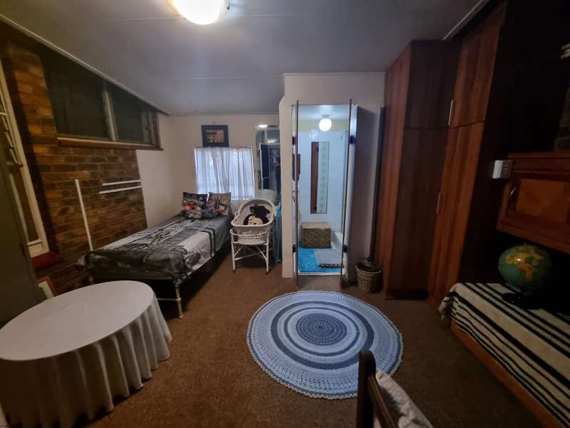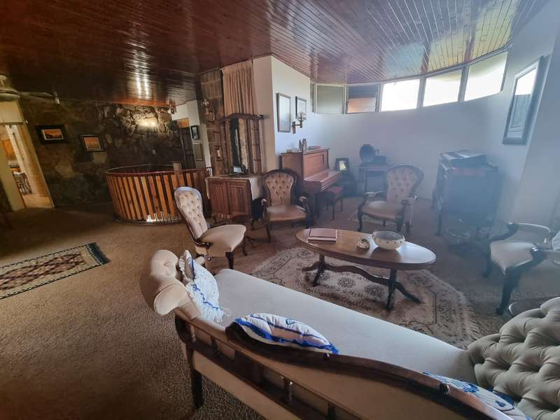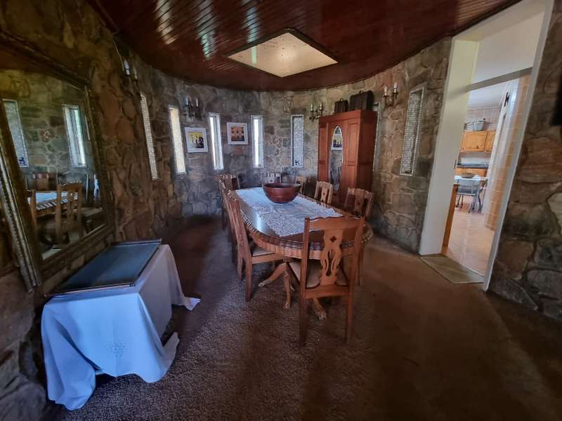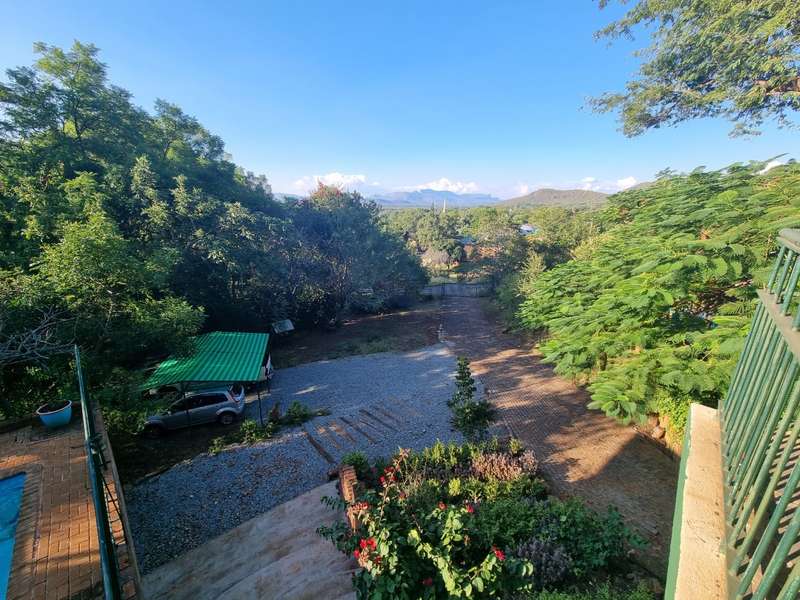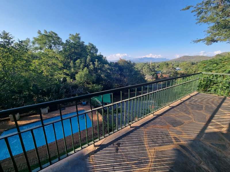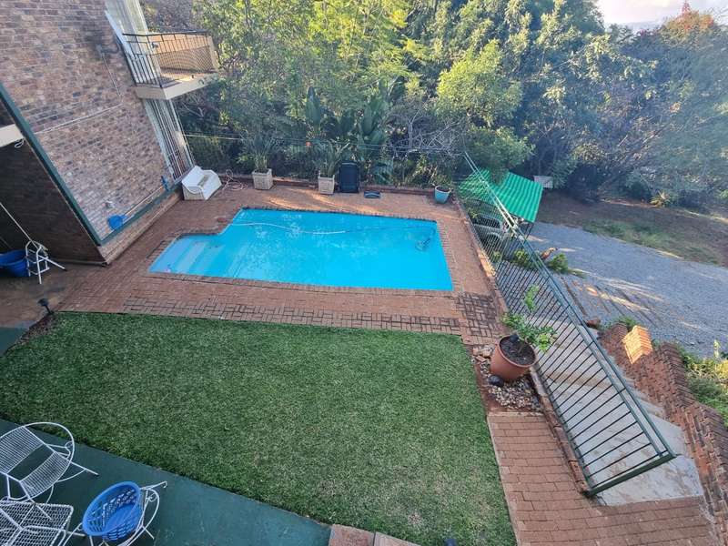 This is a magnificent property situated in town. The property consists of the following: 1X Large 1 bedroom flatlet, complete with it's own entrance and parking. Main house consists of: 5 bedrooms 2 en-suite bathrooms 1/2 bathroom 1x Guest toilet 1x Full Bathroom Entertainment area Porch with built-in braai and amazing views Swimming pool Borehole Rain water tank 5000 ltr tank 4x carports( 2 being for the tenants in the flatlet) Double garages Kitchen Scullery Separate washing up Dining room Separate dining room Separate living room Staff Quarters Shed Balcony at main bedroom This is a must see property with huge potential.