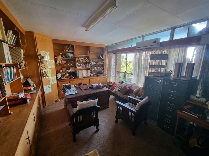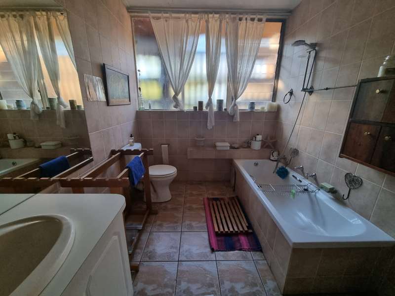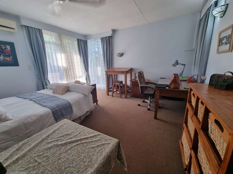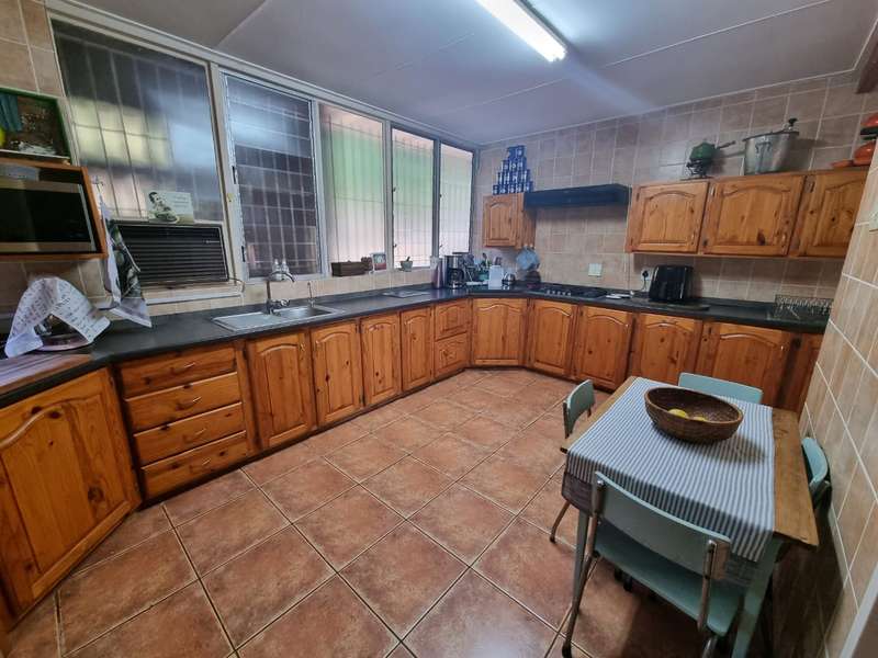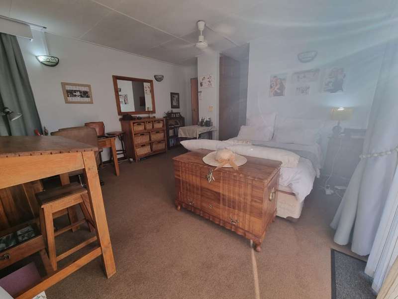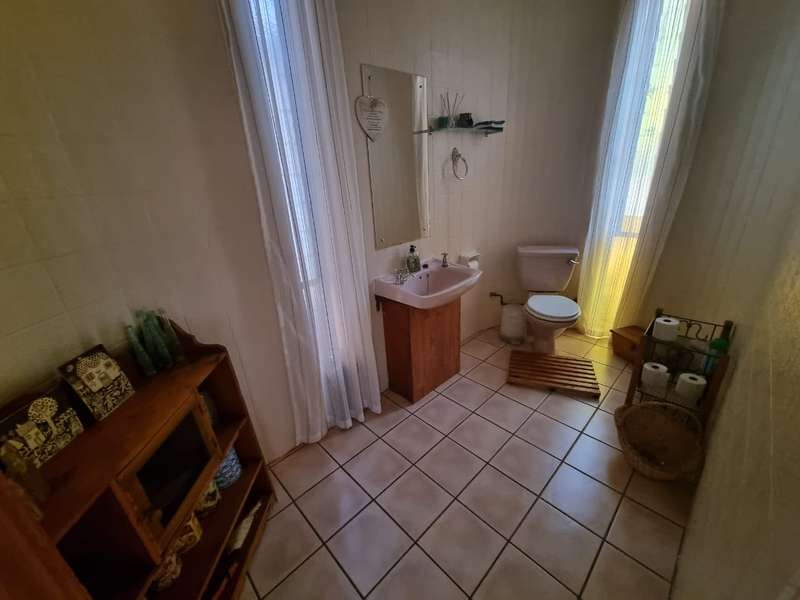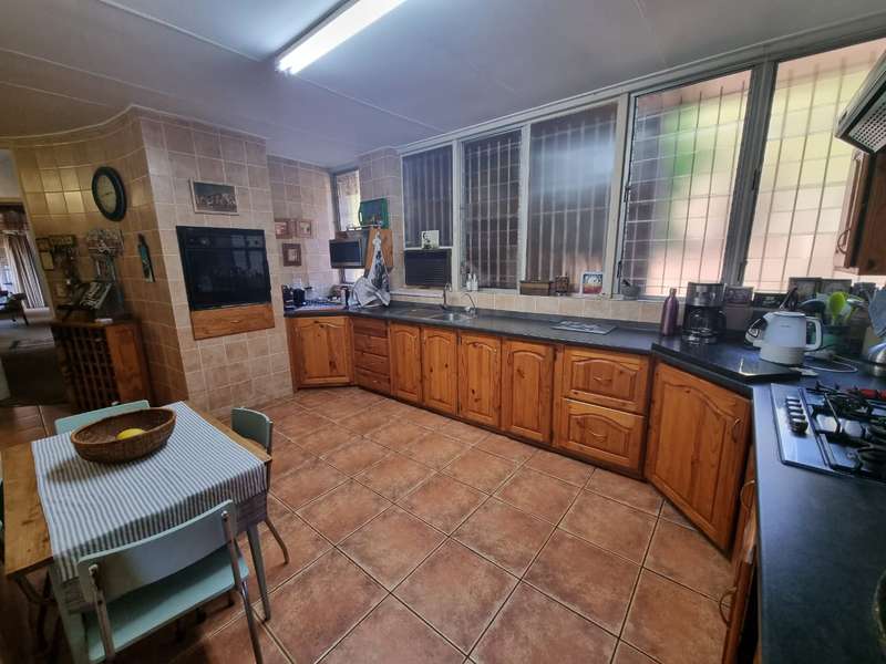 This is a magnificent property situated in town. The property consists of the following: 1X Large 1 bedroom flatlet, complete with it's own entrance and parking. Main house consists of: 5 bedrooms 2 en-suite bathrooms 1/2 bathroom 1x Guest toilet 1x Full Bathroom Entertainment area Porch with built-in braai and amazing views Swimming pool Borehole Rain water tank 5000 ltr tank 4x carports( 2 being for the tenants in the flatlet) Double garages Kitchen Scullery Separate washing up Dining room Separate dining room Separate living room Staff Quarters Shed Balcony at main bedroom This is a must see property with huge potential.