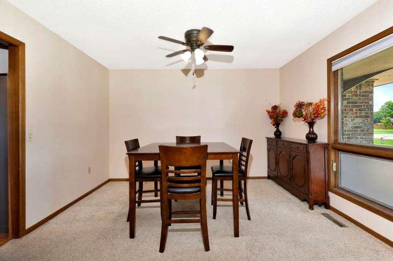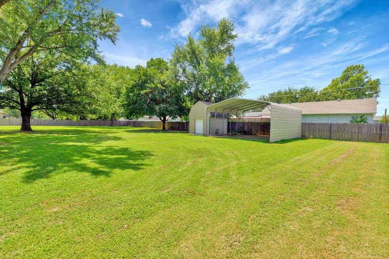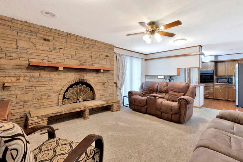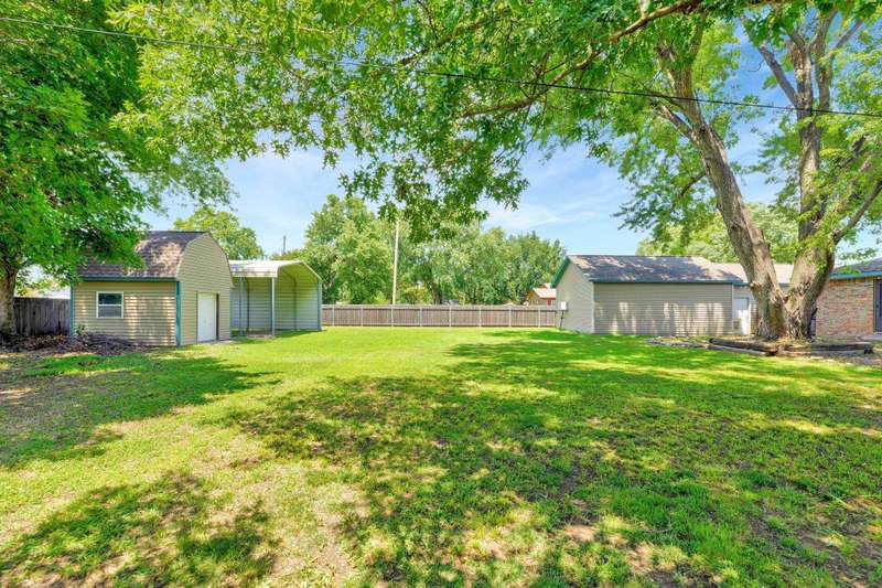 Tucked on a 0.92-acre corner lot with mature trees and exceptional storage buildings in the Valley Center School District, this full-brick ranch offers space, flexibility, and a quiet setting with easy access to highways. Lovingly maintained by the same owner for 25 years, it features a traditional floor plan with both formal and casual living spaces, including a front room that works well as a living room or home office, a formal dining area, and a cozy family room with a stone fireplace. The oversized primary suite is a rare find for a home of this era, complete with an ensuite bath and walk-in closet. Recent updates include a BRAND NEW ROOF (installation scheduled), new carpet in most rooms (2024), new garage door openers with app connectivity, new siding on two sides of shop (scheduled), and a brand-new HVAC system (2024). The all-electric home also includes a pantry, mud room, 2.5 bathrooms, and a covered front porch perfect for relaxing evenings. Outside, you'll find a fenced backyard and a variety of detached buildings that are hard to come by: a 960 SF building, a 26' x 24' carport, and a separate storage shedideal for hobbies, storage, or additional covered parking. The large outbuilding is equipped with a window A/C unit and a heater that operates with a propane tank (not currently in place) while the attached two-car garage offers even more convenience. Homes in this area are popular for their large lots, extra outbuildings, and peaceful atmospherethis one checks all the boxes. Don't miss!