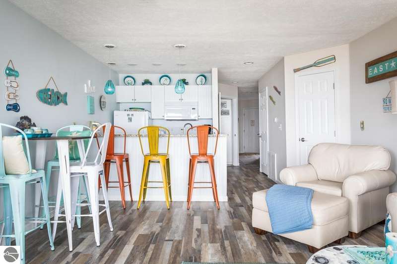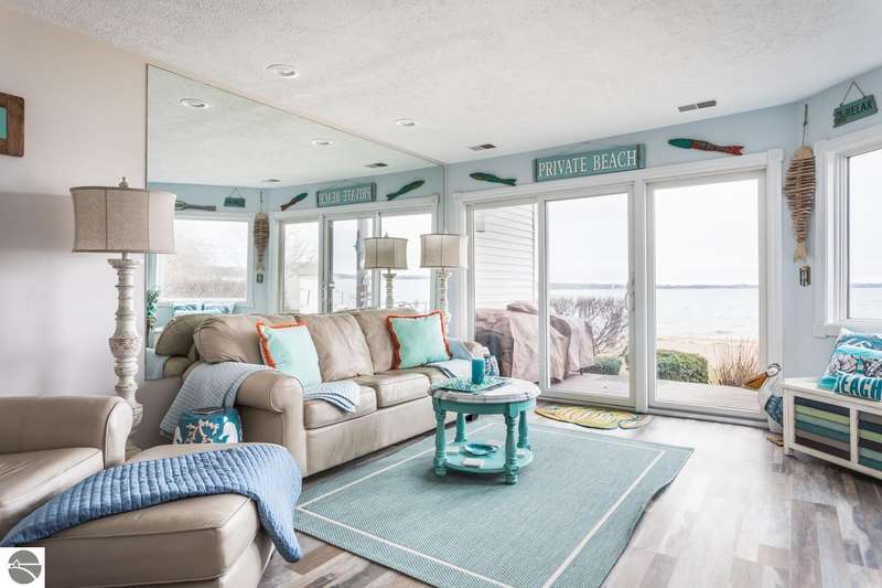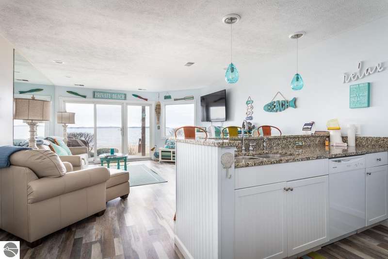 Nestled on the coveted "Miracle Mile" beach, this fully furnished, turn-key, beachfront condo offers the perfect combination of relaxation and investment potential. Located on the pristine shores of East Bay, this condo provides breathtaking bay views, direct walk-out access to the white sandy beach, and it's unbeatable location in Traverse City. "The Beach Condominiums" offers resort style amenities, including a sandy beach area, heated pool, and a hot tub. Unit 109 next door is also available for purchase offering a rare opportunity to have a door installed between them connecting the two units. This unit was completely renovated within the last five years. Updates include: New flooring throughout, updated kitchen and bathroom, a new furnace and water heater.