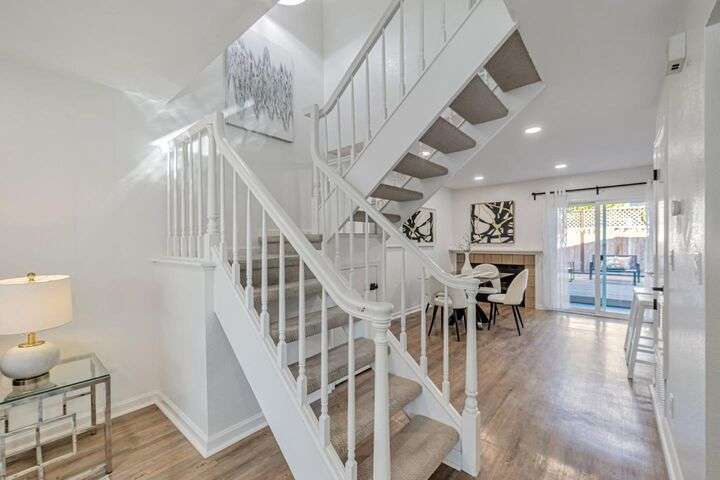 LOCATION, LOCATION, LOCATION! Discover this 3BR/2.5BA townhome-style condo in the heart of Campbell. Nestled in a serene neighborhood yet just minutes from Apple, Nvidia, Netflix, Ebay campuses and downtown Campbell shops and restaurants, this home offers the perfect blend of peace and convenience. Easy access to 85, 17, and 880 keeps all of Silicon Valley within reach. Assigned to top scoring schools: Farnham Elem (8), Price Middle (9), and Leigh High (10) (Buyers to verify schools). Enjoy nearby Los Gatos Creek Park and Vasona Lake Park for outdoor recreation. Inside, an open-concept living/dining area is filled with natural light, highlighted by recessed lighting and a cozy fireplace, flowing to a private patio ideal for morning coffee or evening gatherings. The kitchen features granite counters & stainless appliances. In-unit laundry with a half bath are on the main level. Upstairs, the spacious primary suite offers a walk-in closet and dual-sink vanity, while two additional bedrooms and a full bath provide flexibility. Extras include vinyl flooring downstairs, neutral carpeting upstairs, 2 dedicated parking (1-car garage and 1 additional dedicated parking spot), and ample guest parking. Don't miss this Silicon Valley retreat!