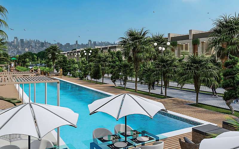 Villas for sale in Ankara are designed as duplexes and consist of 2 bedrooms, a living room, an open-plan American-style kitchen, 2 bathrooms, and a private garden. These villas are planned in accordance with the requirements of modern living and come with features such as underfloor heating, a cloakroom area, and high-quality wet floor coverings as standard. Optional features like a fireplace and TV unit are also available upon request.