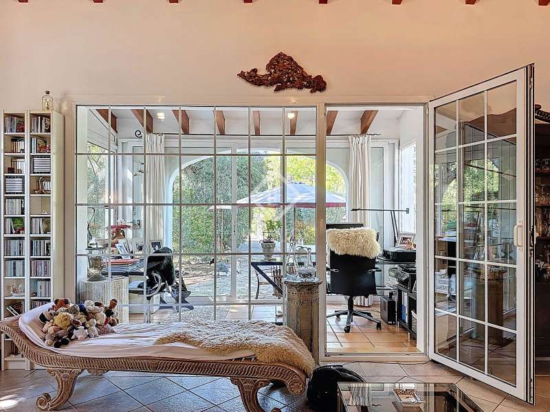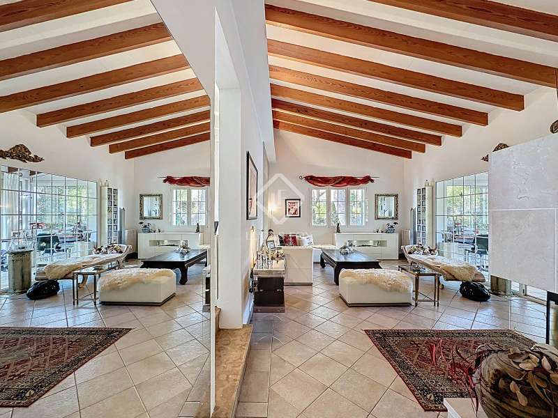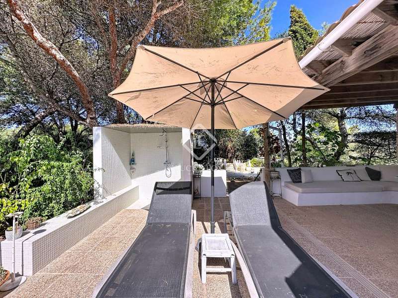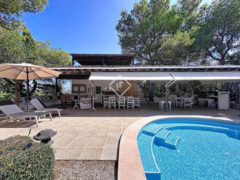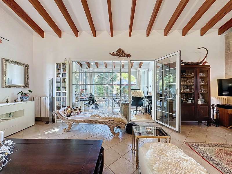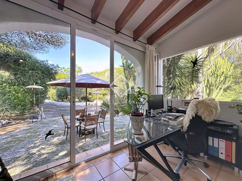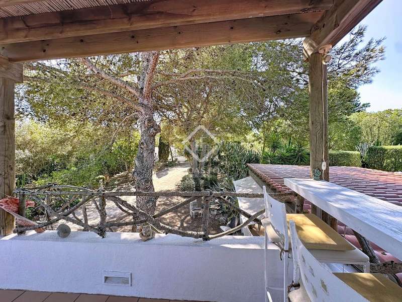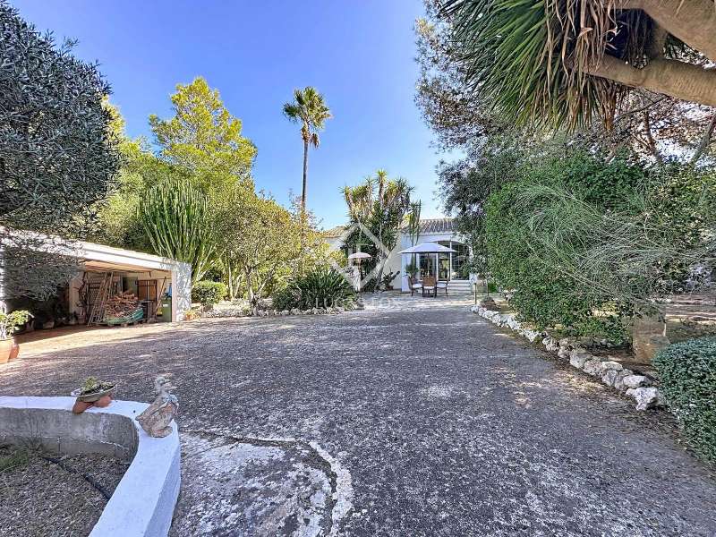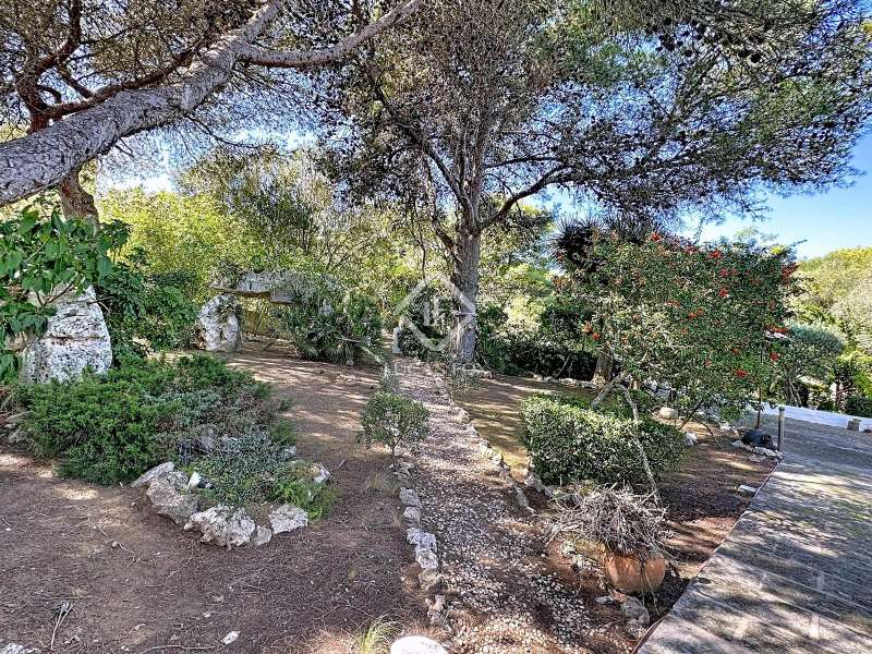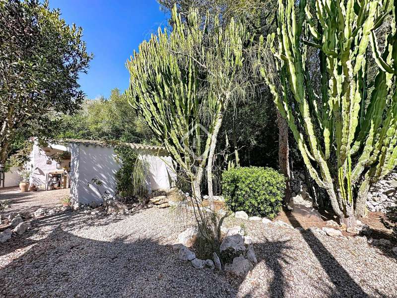Nestled on a spacious 8,582 m² plot , this unique property offers a haven of peace and privacy in the heart of Menorcan nature, just minutes from Sant Lluís. La Finca combines rustic charm with all modern amenities and features several buildings harmoniously distributed throughout the land. The main house consists mainly of a bright and well-laid-out ground floor . It houses a cozy living room with a seating area and fireplace, a fully equipped kitchen, a double bedroom , a spacious bathroom with a bathtub and shower, and a versatile space that can be used as an study or dining room. This floor is complemented by two pleasant terraces, a utility room, a boiler room, and an additional bathroom with a shower. The property has air conditioning and oil heating. In the basement, with natural light thanks to its windows, we find two additional bedrooms, both with air conditioning, ideal for guests or as a private area. The exterior invites you to enjoy the Mediterranean lifestyle: a spectacular 65 m² pool with waterfalls, surrounded by a terrace with a stone seating area, barbecue, summer kitchen with refrigerator, and exterior shower with hot water. There's also a jacuzzi, a balconies, and various outdoor relaxation areas. La Finca has two entrances, one with an electric gate and security camera, and a large double garage with an upper terrace offering beautiful views of La Mola. It also has several small cottages and storage spaces, some with shaded areas and barbecue grills. Among them is a fully equipped independent apartment with a living room, bedroom, kitchen, bathroom with shower, air conditioning, a storage room with a boiler and washing machine connection, and a covered terrace ideal for enjoying the tranquility of the surroundings. The lovingly maintained garden offers numerous fruit trees, exterior lighting, an irrigation system, and a petanque court (bodja/boules), creating a perfect setting for outdoor living. A unique property that combines comfort, nature, and Menorcan authenticity, ideal both as a permanent residence and for enjoying long stays on the island.