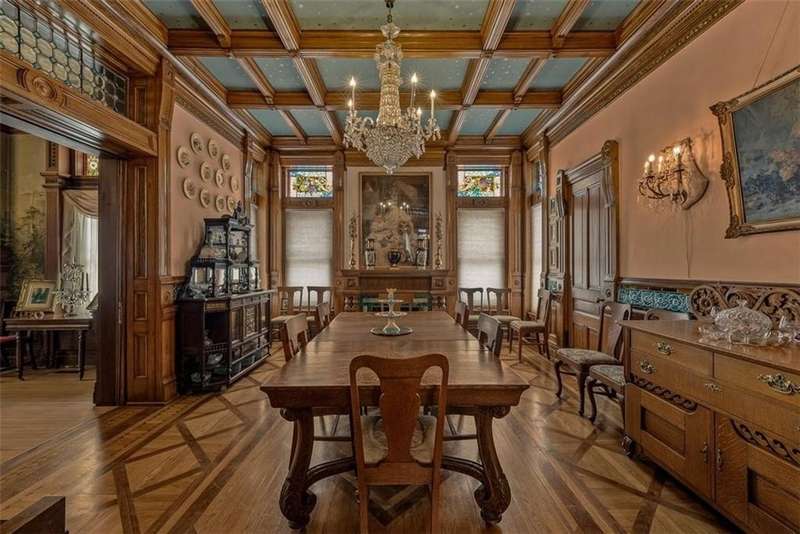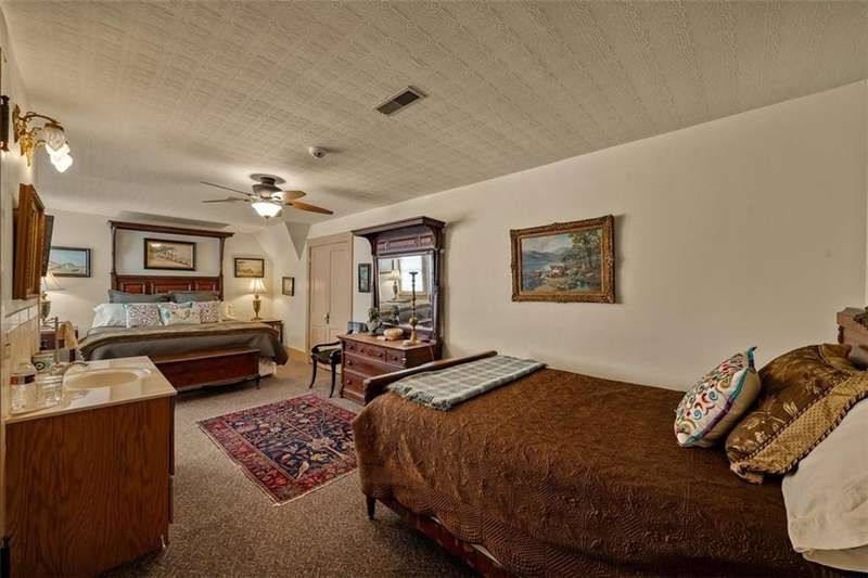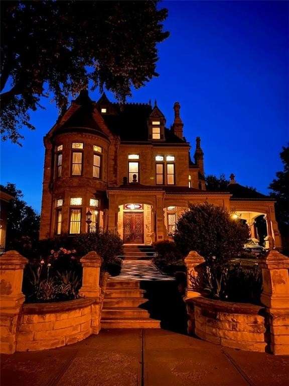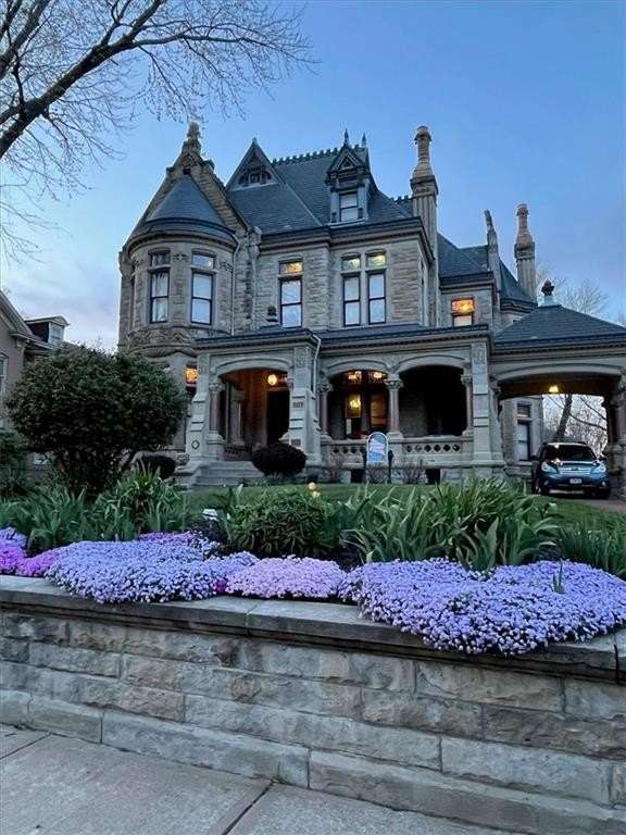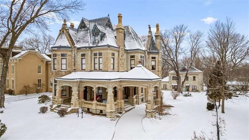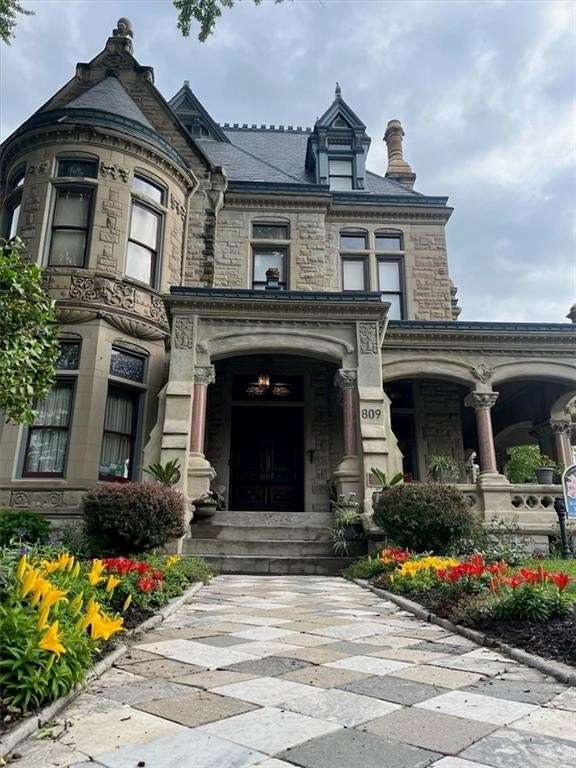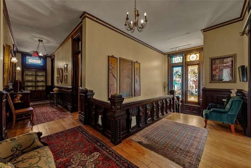 Shakespeare Chateau Inn and Gardens, located in the historic Hall Street District, is one of St. Joseph’s premier homes. A SHORT DRIVE TO KANSAS CITY INTERNATIONAL AIRPORT! Built in 1885, this Chateauesque style home was built by Nathan P. Ogden. This high-Victorian mansion is an architectural gem, showcasing 47 original stained glass windows, exquisite hand-crafted woodwork, an expansive encaustic tile foyer, ornate plaster ceilings, and many original chandeliers - just to name a few. The main house is a fully furnished turn-key bed and breakfast with six elegant suites, a spacious commercial kitchen and wine cellar perfect for small gatherings. Four guest rooms on the second level are furnished with period art and antiques each named after works of Shakespeare. Two additional suites on the third level are ideal for long term guests. The carriage house provides three apartments, perfect for longer-term rentals, adding versatility to the property. 819 Hall Street is also included. This all brick house has been refurbished on the exterior and inside is a blank canvas, stripped to the studs and ready for a transformative rehab. Whether you envision a personal residence, a thriving B&B, or an event space, the possibilities here are endless. Live your dream and make Shakespeare Chateau your next great chapter. This is a RARE OPPORTUNITY to own a piece of history. This house has changed hands only five times in 140 years and remains as magnificent as the day it was built.