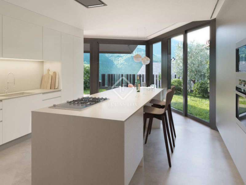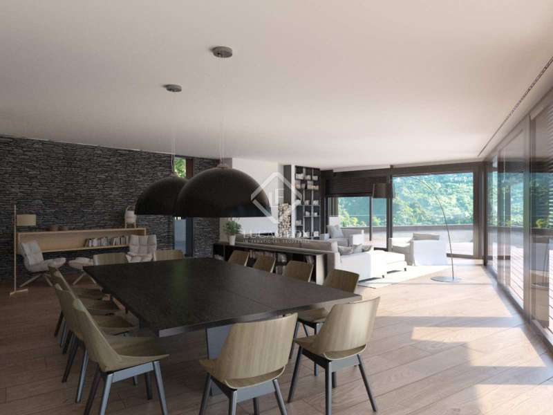 This impressive designer villa is located in the centre of Andorra la Vella, with direct pedestrian access to Andorra's main shopping avenue. It was jointly designed by two renowned architecture and interior design teams and boasts the highest standards in design, comfort, and materials. The villa, with a total constructed area of 1,128 m², is spread over three floors, plus the basement. On the ground floor, we find a spacious living-dining room, a state-of-the-art kitchen, and the staff bedroom with a bathroom and toilet. It also offers huge windows with access to the approximately 300 m² garden and a terrace with wonderful views and natural light throughout the day. The living area is 236 m². On the first floor, with a surface area of 231 m², we have four spacious bedrooms with private bathroom , a balcony with views, and a TV room or library. The upper floor houses a huge 120 m² bedroom with a luxurious dressing room, a spectacular bathroom with views, and a private terrace. On the underground floors, we find the spa, heated pool , and gym, as well as various wine cellar cellars, a laundry room, a storage room, technical rooms, and ample parking for seven vehicles. The total area is approximately 540 m². This villa is unique in Andorra for its location in the centre of the capital, its innovative design, and its meticulous style. A style guide created by the interior design studio is available to the client. This villa is available from March 2026. Please contact us for more information.