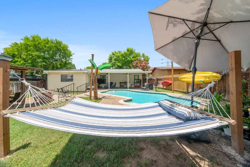 This is the perfect ENTERTAINMENT HOME! Enjoy the beautiful IN-GROUND POOL with a large covered patio, ceiling fans, deck, fire-pit area and a pool shed set up as an outdoor bar. Great OPEN FLOOR PLAN, with TWO LIVING AREAS, a SEPARATE DINING ROOM and an EAT-IN KITCHEN. Other features of this lovely NO CARPET, 3 bedroom, 2 bathroom home is the 4 car covered carport, ring door cameras and the sprinkler system. Easy access to 1-35, Austin Highway, Fort Sam Houston and Brook Army Medical Center. - 11/8/2025 8:17:04 PM