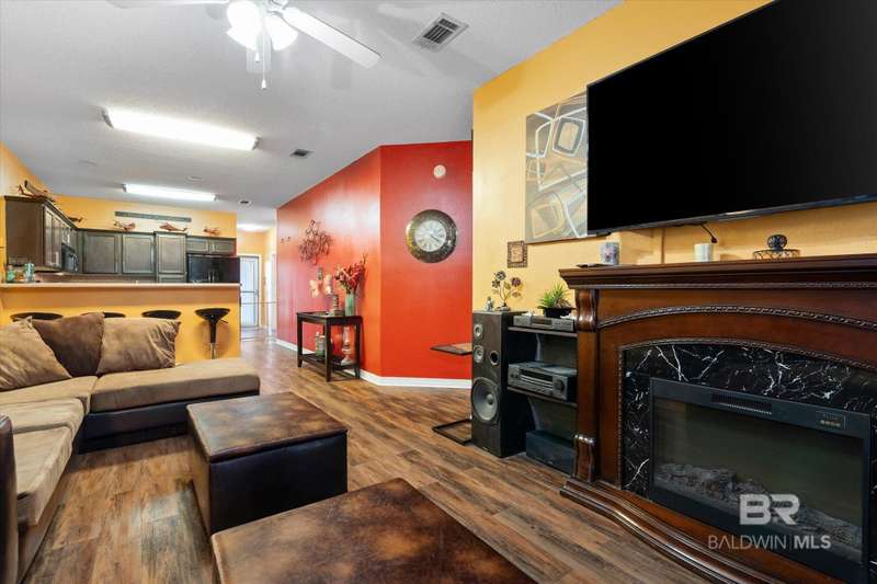 Perfectly located and affordable, this one-level 3-bedroom, 2-bath condo in Victoria Place, offers both comfort and convenience! The interior boasts tall ceilings and an open-concept kitchen, living, and dining area create a spacious feel. A covered front entrance, single-car garage, and covered back patio add to its charm and practicality. Unique features include penny flooring in the primary bathroom, nickel flooring in the second, LED lighting throughout, and tinted windows for improved energy efficiency and lower utility costs. Major updates, such as a new roof and siding were both completed in 2021. The COA takes care of the grounds and exterior maintenance, ensuring hassle-free ownership. Plus, you'll love being within walking distance of Tanger Outlet, OWA parks, mini-golf, bowling, and restaurants. All furnishings, blinds, window treatments, refrigerator, fireplace, washer/dryer, and a state-of-the-art security system are negotiable. Seller is offering a Home Warranty. Dont miss this fantastic opportunityschedule your showing today! Buyer to verify all information during due diligence.