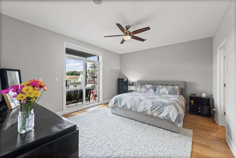 This wonderful & meticulously maintained condo offers 1,800 square feet of living space situated between West Lakeview & Roscoe Village. With a gorgeous primary suite and 2 other generously sized bedrooms as well an oversized kitchen/dining and living room, the spaciousness of this home allows you to settle in and live your best life. The living room has gorgeous built in shelving, and a gas fireplace that goes on with just a switch. Cozy up this fall in your new home, and enjoy all this neighborhood has to offer. Incredible closets in every room, a dedicated laundry room with brand new side by side washer/dryer, 1 garage spot and additional storage in the garage. The large and private deck off the back of unit is accessible by the hallway, allowing you to maintain the primary suite as your private oasis.
