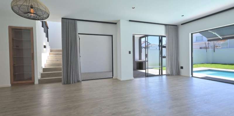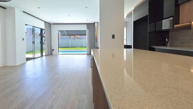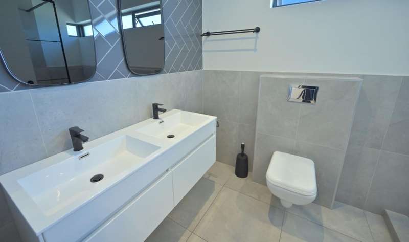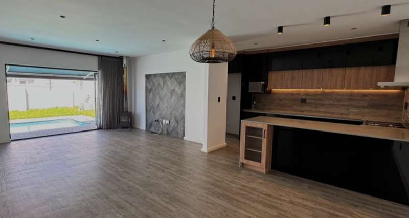 This residence offers the perfect blend of comfort and functionality. 4 bedrooms, 3 bathrooms, Master suite - complete with a walk-in closet, en suite bathroom with spacious walk-in shower and his-and-hers basins. 2 upstairs bedrooms share a beautifully designed free-standing oval bath, large walk-in shower, and sleek basin. The passage includes extra storage space, perfect for linen and household essentials. PJ lounge on the upper level provides the perfect retreat for movie nights or relaxation. Guest bedroom upstairs with an adjoining bathroom offers versatility, doubling as a home office or study if needed. The kitchen is both functional and sophisticated, featuring engineered stone countertops, extensive floor-to-ceiling cabinetry, free-standing gas stove with an electric oven, and a high-quality extractor fan. Separate scullery** is fully equipped with additional storage and plumbing for two appliances. Spacious living areas include a fireplace, covered entertainment patio with a built-in Jetmaster braai. Large stacking doors open up to a swimming pool and a beautifully landscaped garden, creating the perfect setting for relaxation and entertaining. Double automated garages including an alarm, outdoor beams, and an electric perimeter fence. Contact me to schedule a private viewing of this exceptional property!
