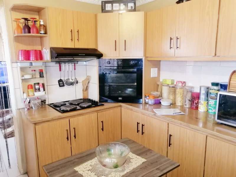 A unique family home for sale. Three bedrooms with ample storage, two bathrooms with bath and shower, open plan lounge and dining area, ideal for family gatherings. Kitchen with abundant storage and eye level oven/stove. Paved yard with a huge carport. Two bedroom flat with a huge bathroom on the property, huge rental potential. This property is close to public transport routes, and amenities. This is a beautiful property for the extended family.