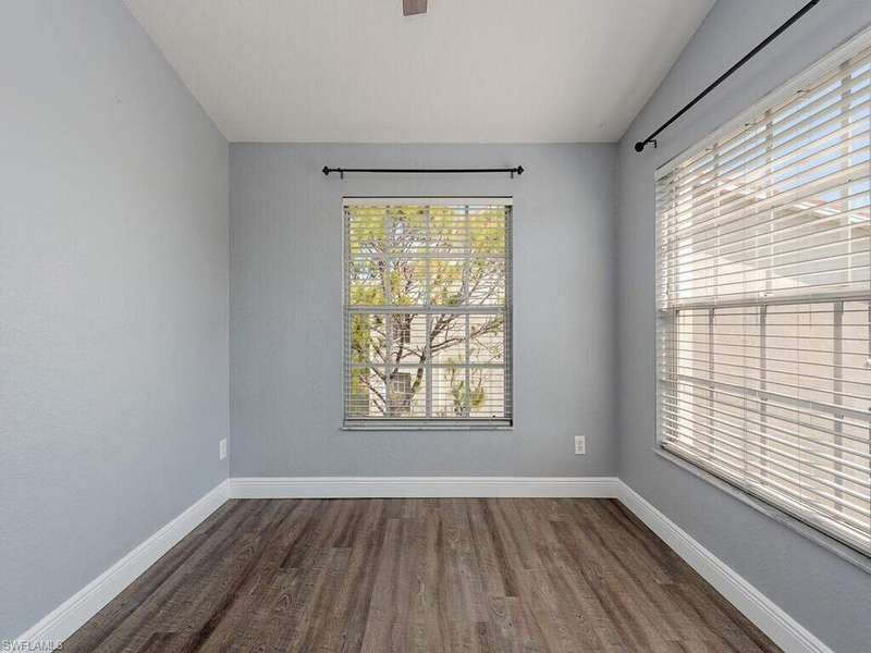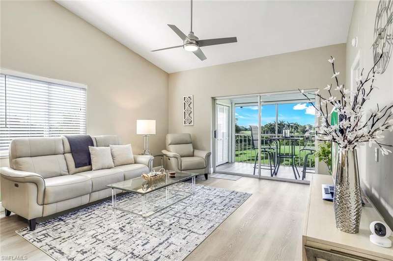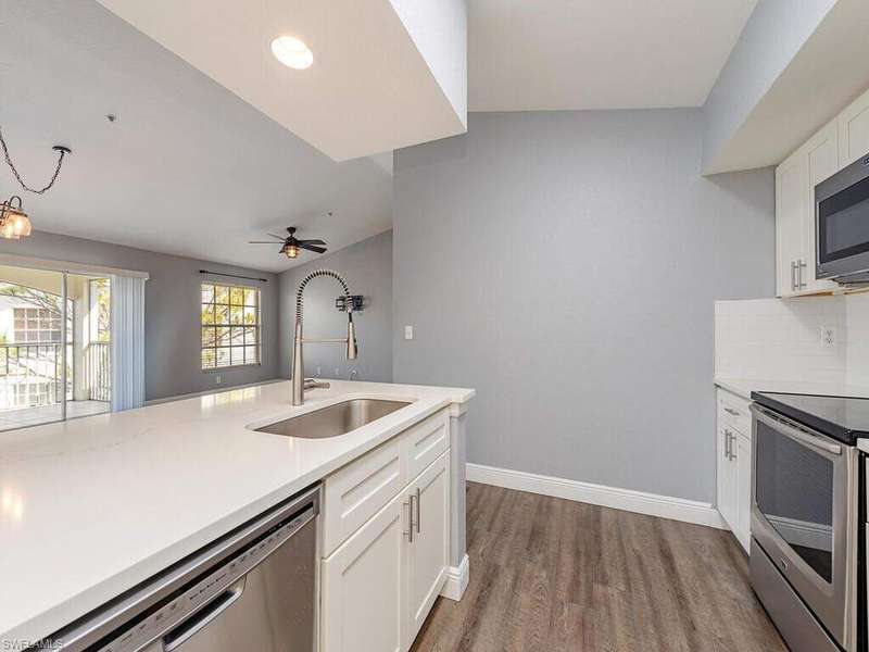 Available for immediate annual lease! Stunning 3-bedroom, 2-bathroom top-floor condo in North Naples! This end-unit home in St. Croix features a beautifully remodeled kitchen with sleek white cabinetry, quartz countertops, and stainless-steel appliances. The open floor plan boasts soaring vaulted ceilings, upgraded luxury plank flooring throughout, and a private screened lanai with serene lake views. St. Croix is a gated community with low condo dues, offering fantastic amenities, including a fitness center, clubhouse, resort-style pool and spa, dog park, playground, and tennis courts. CCPS shows A rated schools. Conveniently located in North Naples, this home provides easy access excellent dining and entertainment, pristine beaches, and more!