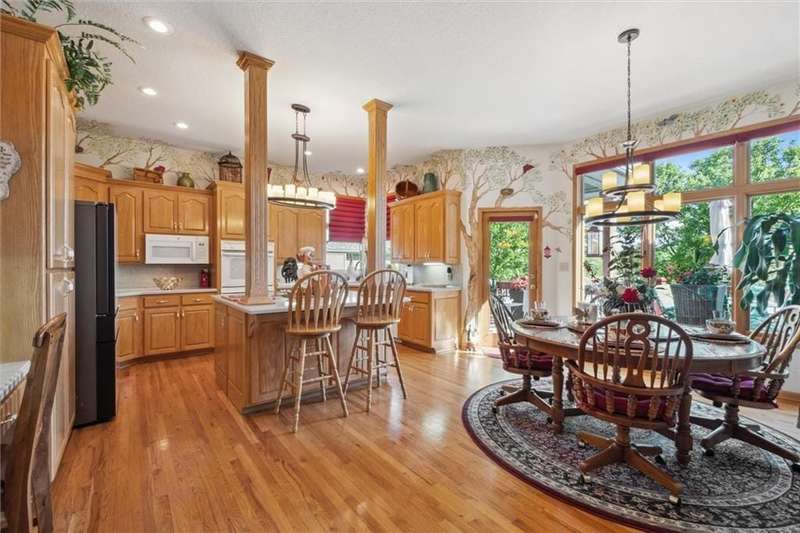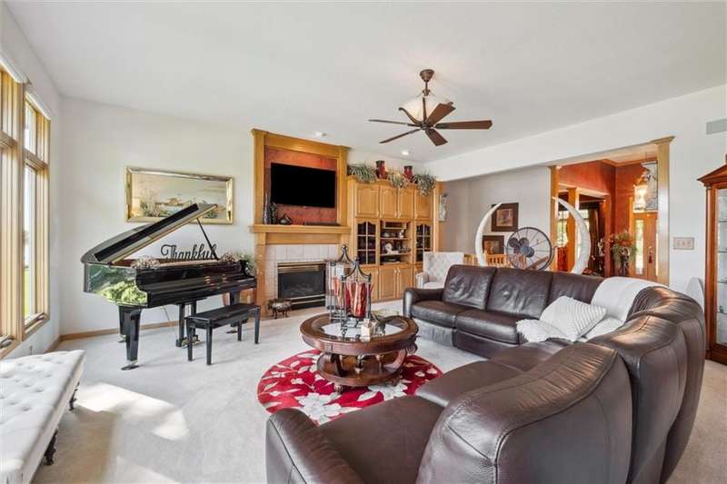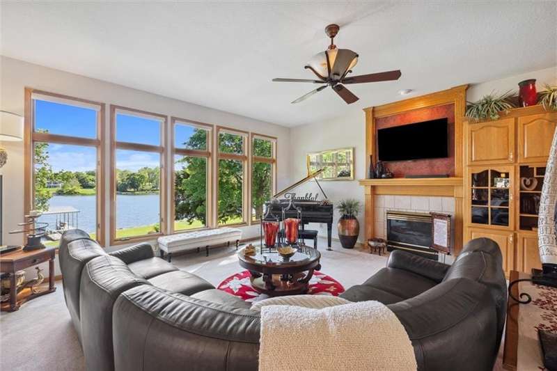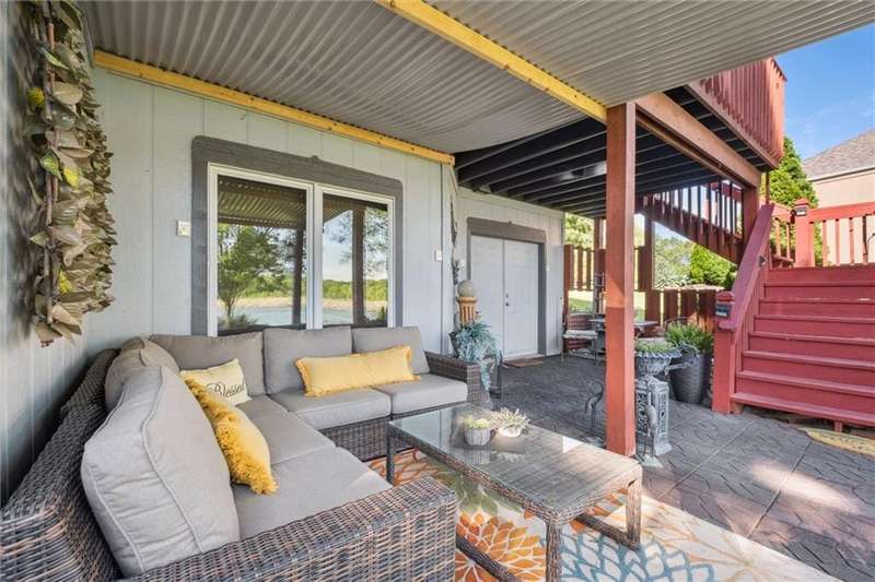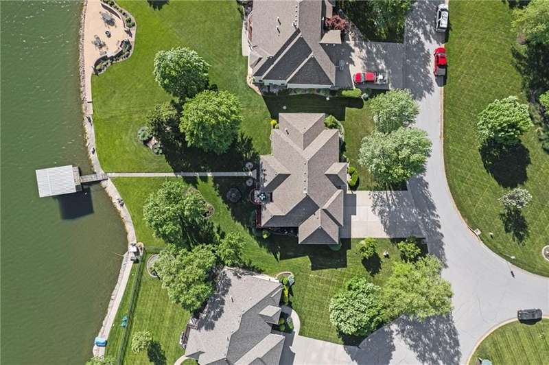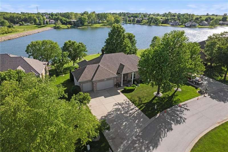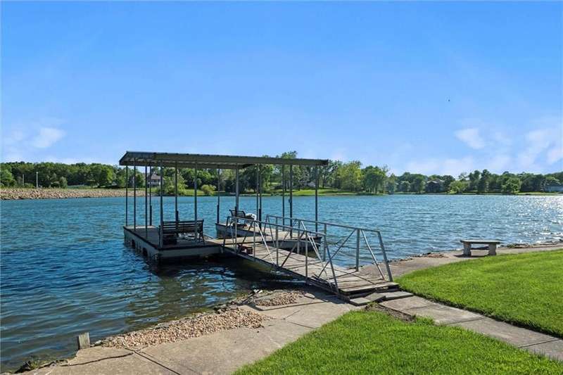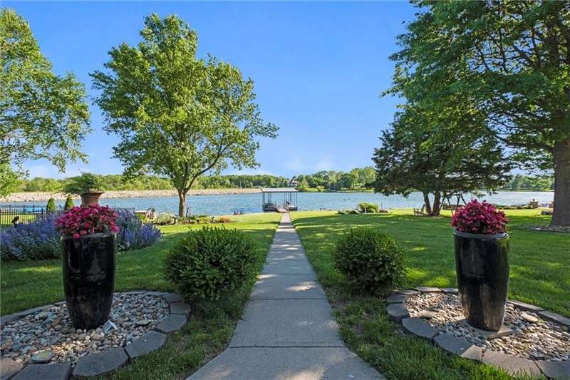SAVE DRIVING to THE LAKE this summer! LAKE LIFE IS RIGHT HERE CLOSE TO THE LEGENDS! Come & meet your dream retreat this SINGLE OWNER custom-built BRICK lakefront home is breathtaking, CLEAN & WELL cared for, right in the heart of Kansas. An estate that seamlessly blends elegance, comfort with a splash of Fun! Nestled on a pristine shoreline, this 4-bedroom masterpiece offers expansive water views and unmatched attention to detail, perfect for the best of everyday living and unforgettable entertaining in Basehor! From the moment you step inside, you'll be captivated by the grandeur of soaring ceilings and the warmth of gorgeous woodwork throughoutrich hardwood floors, custom millwork, and soaring ceilings with picture windows that deliver a timeless and inviting atmosphere, ready for your own personal touches! The spacious floor plan includes four generously sized bedrooms, a dedicated exercise room, and a vibrant game room, offering flexible spaces for both relaxation and activity. The heart of the home is its gourmet kitchen with dual decks & stunning lake views, covered patio and a showstopping walk-out basement complete with a full second kitchen, lounge area, and direct access to the outdoor living space and private boat dock! A 3-car main garage provides ample room for vehicles and storage, while a separate garden garage in the back offers additional space for tools, water toys, or hobbies. This home isnt just a residenceits a lifestyle. The curb appeal is undeniable, with a manicured lawn, sprinkler system, paved path to the water, modern landscaping, and a welcoming front porch! Whether you're hosting friends and family or soaking in the tranquility of lakefront living, this one-of-a-kind property is the perfect balance of luxury and nature. Minutes from Legends, Sporting KC, NASCAR & an arm's reach to Lawrence, Fort Leavenworth, Desoto and Parkville! Don't miss this one for the BEST of LAKE living with your own private boat house, dock and boat in KC!