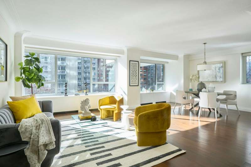 With an abundance of light throughout, this pristine South facing 2 bedroom/2 bathroom home is both comfortable as well as stylish. The functional layout offers a multi-purpose entrance gallery, expansive living/dining area, and generously proportioned bedrooms. The custom plaster moldings and new wood floors add an additional "sense of quality". The windowed chef's kitchen is a grey and white beauty. There are Viking stainless steel appliances (including a wine cooler), Balsatina countertops (quarried outside of Rome), abundant custom white oak cabinetry, and a snazzy Ann Sacks glass backsplash. Within the primary bedroom suite is a marble bathroom with double sinks and stall shower. There is generous closet space. Outside the secondary bedroom is a full bathroom that also functions as a powder room. With a washer/dryer, entry closet, and multiple exposures, this sophisticated 1,460 square" residence is superb, spacious, and sun-lit!