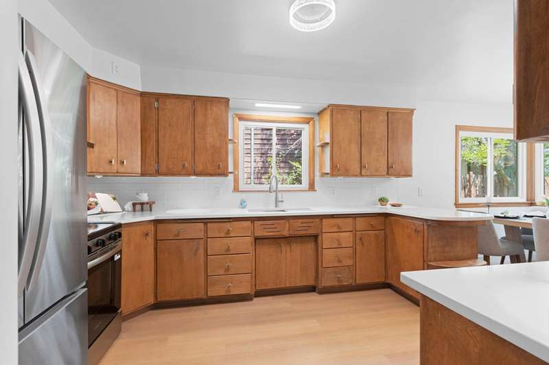 Stunning 4 bedroom 2 bath mid-century home thoughtfully updated from top to bottom, blending original character with modern elegance. The beautifully remodeled kitchen features stone countertops, a tiled backsplash, and brand new stainless steel appliance package. Inside, you'll find a mix of original hardwood floors and luxury vinyl plank flooring, blending old and new. Built-in cabinetry, timeless woodwork, and a gorgeous wood-burning fireplace maintain the original character of the home. This rare gem is located just steps from Riverview Gardens and within walking distance to downtown amenities, parks, the farmers market, and shopping, offering the perfect balance of charm, comfort, and convenience.