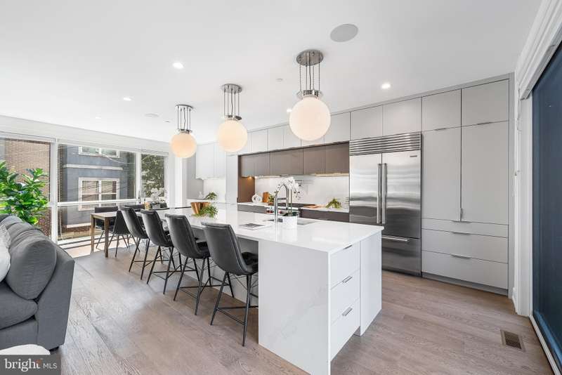 Welcome to 618 S Clarion Street, an extraordinary 35-foot-wide luxury townhome tucked within the private, gated Kater Court community in the heart of Bella Vista. Offering over 4,000 square feet of impeccably designed living space, this rare residence features a private 2-car garage, elevator access to every level, and refined indoor-outdoor living in one of Philadelphia's most vibrant neighborhoods. Step into a dramatic foyer where soaring ceilings and wide-plank hardwood floors set a sophisticated tone. Just off the entry, you'll find direct access to the large 2 car garage. One floor below is a spacious flex room with a full bath and wet bar-perfect for a media lounge, guest suite, or home gym. From there, the private elevator provides effortless access to the main living level. Bathed in natural light, the open-concept layout is designed for both comfort and entertaining. A sleek fireplace anchors the living area, while the adjoining chef's kitchen impresses with a six-burner Wolf range, Sub-Zero appliances, handcrafted cabinetry, and a statement island. Just beyond, a balcony off the kitchen extends the living space outdoors-ideal for quiet mornings over coffee and evening gatherings with friends and family. The Owner's Suite occupies its own full floor-a serene retreat featuring oversized windows, dual walk-in closets, and a spa-inspired bath with Porcelanosa tile, Waterworks fixtures, a freestanding soaking tub, and a large walk-in shower. The fourth floor offers three additional bedrooms and two full baths. One bedroom includes its own en-suite, while the other two generously sized rooms flank a spacious bathroom with a double vanity-perfect for guests or family. At the top, a sunlit bonus room with built-in wet bar opens through a wall of sliding glass doors to an oversized private terrace with open western views of the Center City skyline-an ideal setting for entertaining or unwinding under the stars. With four bedrooms, four full baths, two half baths, multiple outdoor spaces, 2 car garage, and approximately six years remaining on the tax abatement, 618 S Clarion delivers a rare blend of luxury, scale, and location in the heart of Center City. This exceptional home is a true gem-don't miss the opportunity to make it yours.