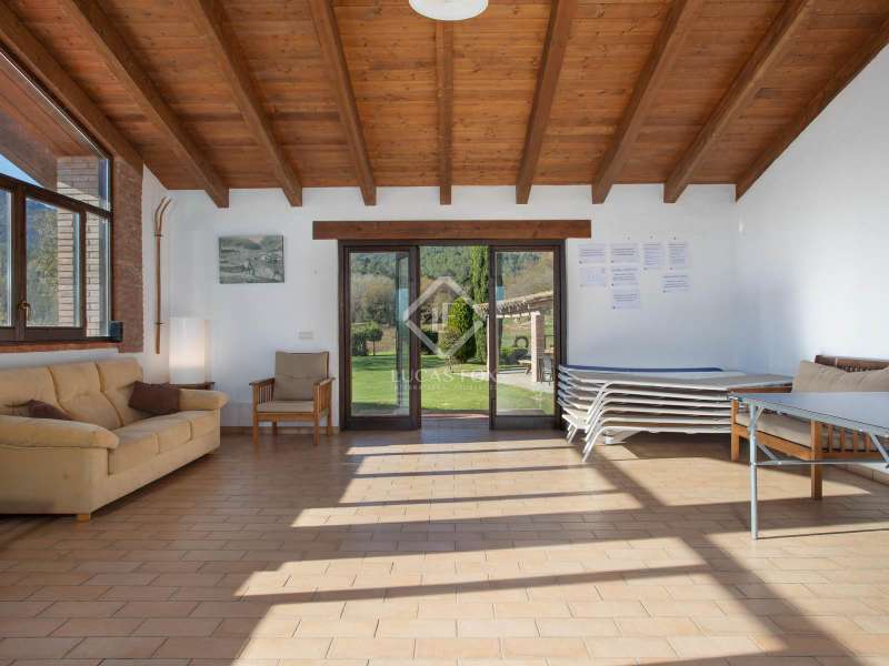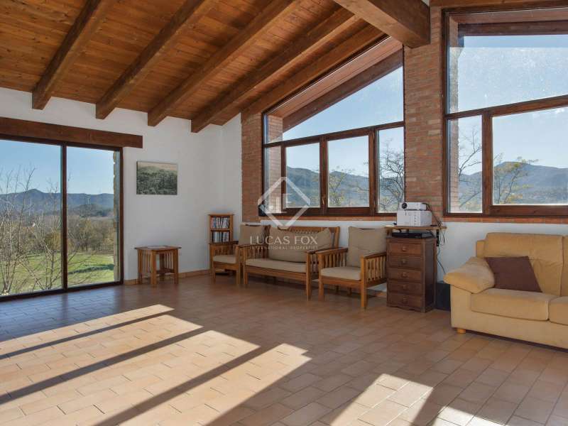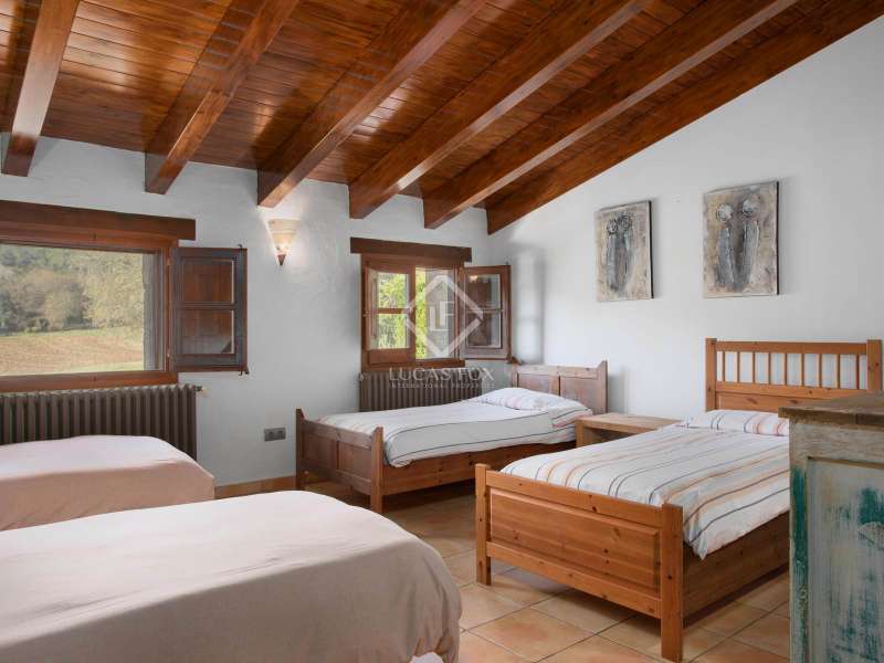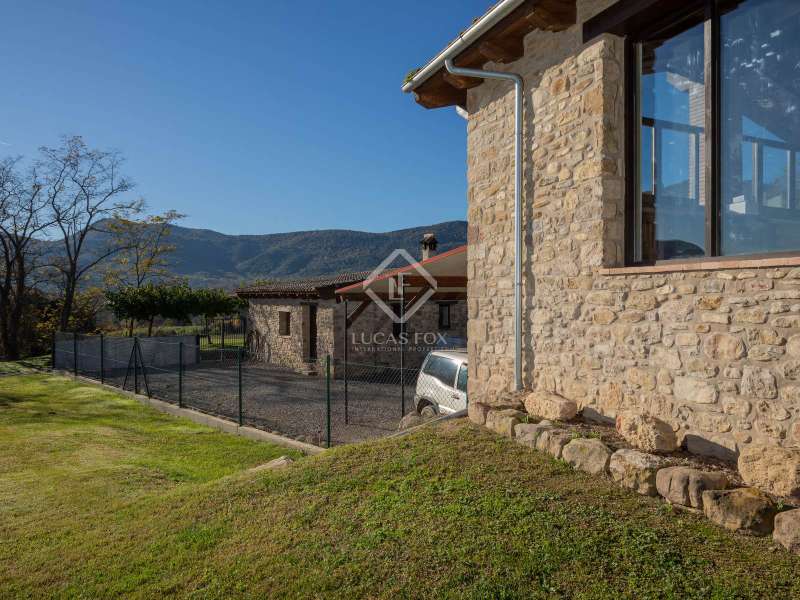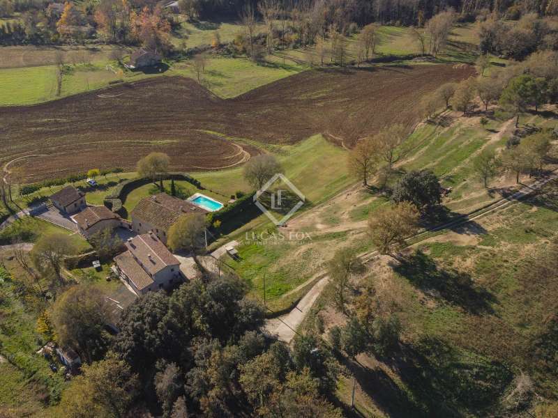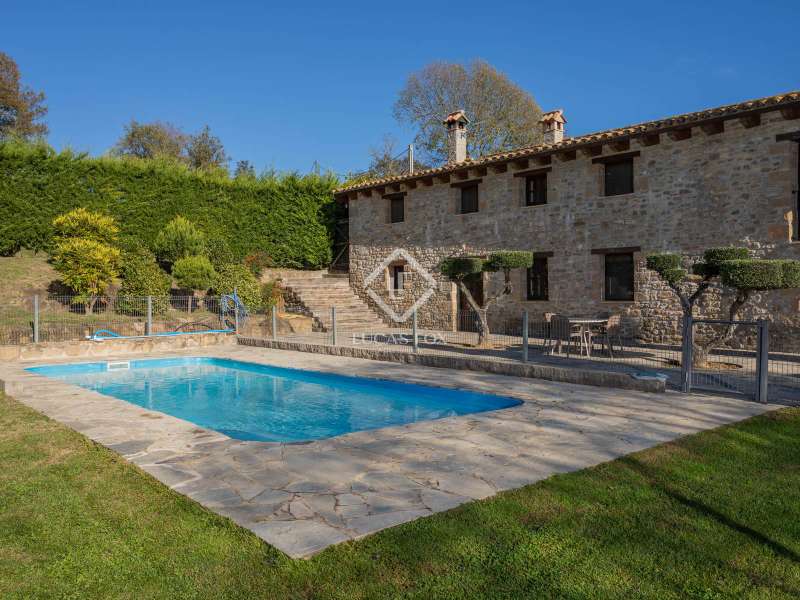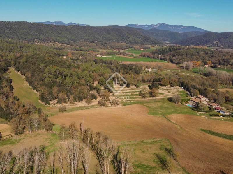 This charming restored country house is located in the natural park of the La Garrotxa Volcanic Zone, in Mieres (Girona). The property, on a 10-hectare building , offers a privileged and peaceful setting with spectacular views of the volcanic landscapes that surround it. The main country house , with a constructed area of 696 m², has been carefully restored and all modern comforts have been installed, while respecting its rustic style. The house has seven spacious bedrooms with period features and a rustic design and oil heating, as well as four bathrooms. Inside, there is also an independent apartment, which offers greater privacy to the owners or can be used for additional accommodation. The country house also includes two annexes that provide great versatility. On the one hand, there is a restored old barn, which houses a games room on the upper floor and a garage on the lower floor . On the other hand, there is a workshop converted into a small apartment, ideal as an independent space or for various activities. One of the property's additional charms is its swimming pool, perfect for relaxing and enjoying the views of the surrounding volcanic landscape. In addition, the house has a covered porch, ideal for enjoying warm summer evenings or for outdoor dinners with friends and family, surrounded by nature. The location of this country house is unbeatable, between Banyoles and Olot, offering easy connection to the town's basic amenities , while maintaining absolute privacy and tranquility. Although it has some nearby neighbours, the property is located far enough away to offer plenty of privacy. The panoramic views of La Finca are stunning, with volcanic landscapes and green fields. This place is perfect for those looking to disconnect and enjoy nature, with the convenience of having access to everything they need nearby.