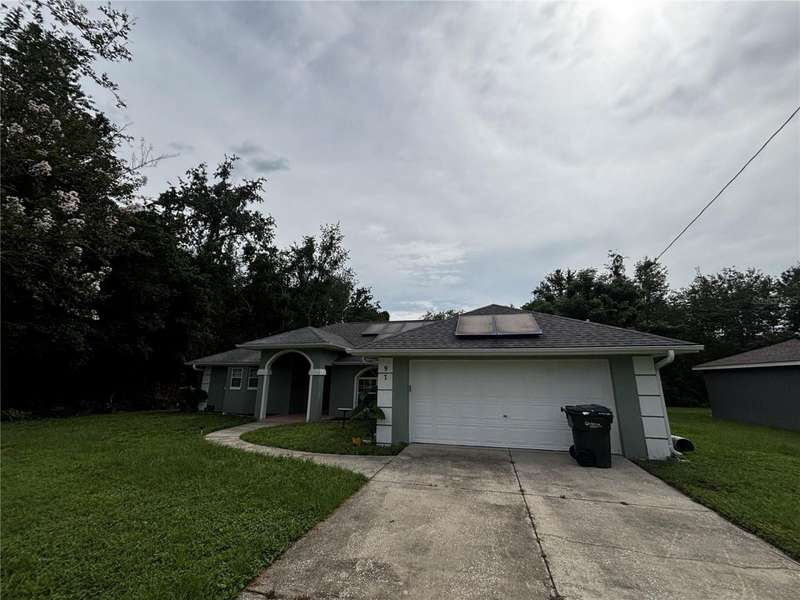 Welcome to this stunning 3-bedroom, 2-bathroom home located in the Silver Springs Shores, SE Ocala, FL. This home is equipped with modern amenities such as a dishwasher, range, microwave, and refrigerator. The home also features an inside laundry room with washer/dryer hook-ups for your convenience. The master suite is a true retreat with a walk-in closet, an ensuite bathroom featuring a tub and separate shower, two vanities, and a private toilet area. The kitchen is a chef's dream with a breakfast bar for casual dining. The home is also energy efficient with solar panels and ceiling fans. The flooring is a beautiful ceramic/porcelain tile, adding a touch of elegance to the home. The large backyard and extended open patio are perfect for outdoor entertaining, and the enclosed screened back porch provides a cozy space to relax. This home is a perfect blend of comfort and modern living.** Ask us about our security deposit plan** **Residents are enrolled in the Resident Benefits Package (RBP) for $39.95/month which includes renters insurance, HVAC air filter delivery (for applicable properties), credit building to help boost your credit score with timely rent payments, $1M Identity Protection, our best-in-class resident rewards program, and much more! More details upon application. **
