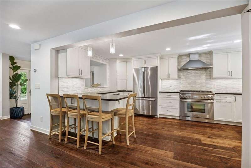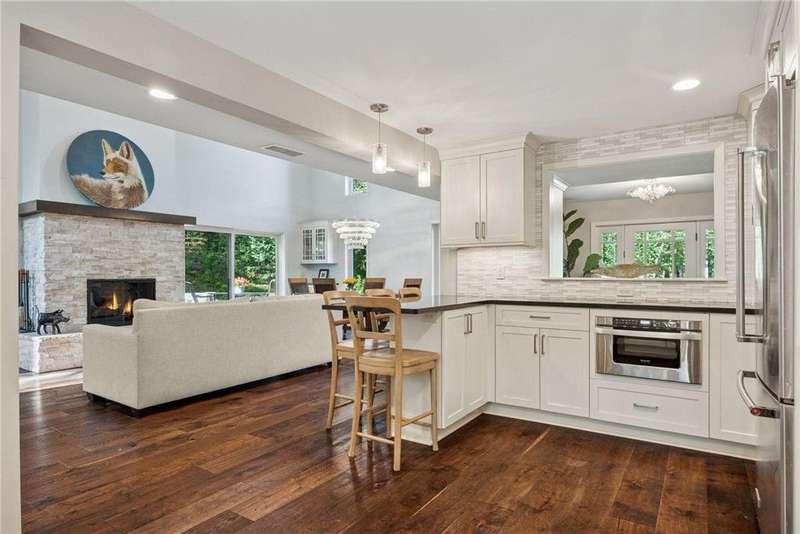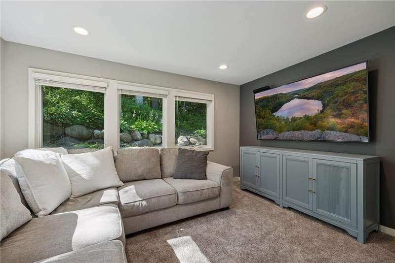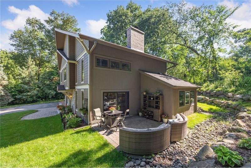 Welcome to this beautifully updated 4-bedroom, 4 bathroom two-story home nestled on a one-of-a-kind property. One of three homes situated around two small ponds, this heavily wooded lot brings the sights and sounds of nature while maintaining the community and conveniences of suburban Minnetonka Mills and nearby Downtown Hopkins. Thoughtfully renovated and expanded in 2017 to bring modern comforts including four bedrooms - two with en-suites - on one level. The stunning primary suite - nearly 600 sf - includes a sunny work-from-home space, huge shower and large walk-in closet. The main floor was designed for function with new kitchen, storage-filled mudroom and foyer and a cozy TV room separated by glass French doors. The oversized wood burning fireplace in the great room / formal living room creates the perfect ambiance for holiday dinners or quiet nights at home. Outside has been updated to enjoy the outdoors with a stone patio shaded by mature oaks often visited by local deer, eagles and song birds. In the winter, ice skating on the pond was made easy with the addition of hot water hose access in the two-car garage for a “Zamboni” smooth finish. Invisible fencing has been installed to give pets a contained environment in the woods and lawn. The home is located blocks from The Lake Minnetonka Regional Trail and nearby Orchard park. The shared driveway is owned by this property with an easement for the neighboring lot.