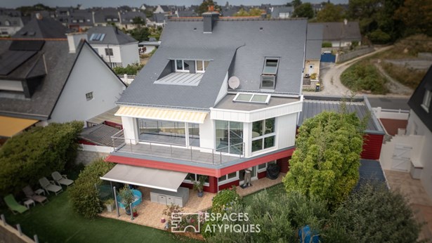 Facing the Petite Mer de Gavres, this exceptional family home unfolds its generous volumes over several levels and enjoys a landscaped garden with private access to the water via its own staircase. Designed to capture both light and panoramic views, the architecture combines comfort and functionality in a sought-after setting close to shops and amenities.