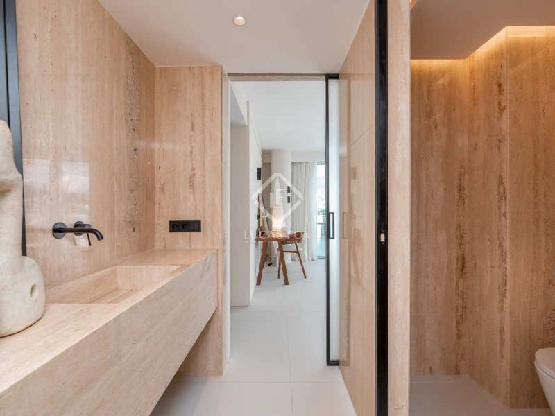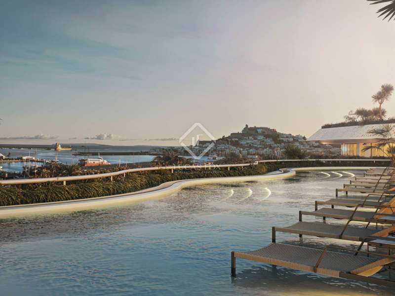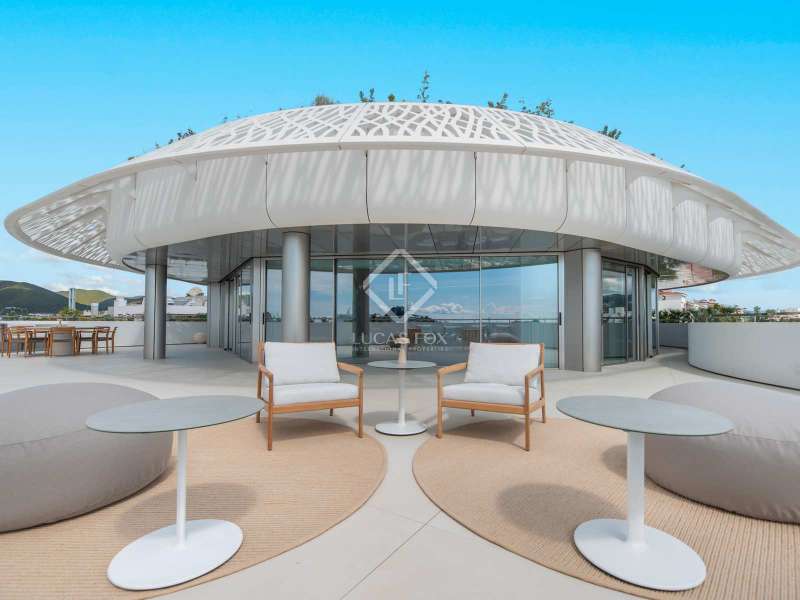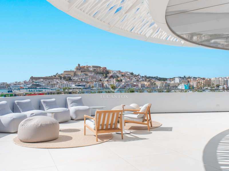 Lucas Fox presents Botafoch Ibiza, the most extraordinary development of luxury apartments located in the most exclusive area, on the Paseo de Joan Carles I, a privileged location next to the port, with excellent views of the sea and the old town of Ibiza, close to all kinds of services, but with the tranquillity that this private residential complex offers. The residential complex offers its owners exceptional common areas, such as an infinity pool with impressive views of the sea on the roof, chill-out areas, a large 320 m² solarium and parking spaces, among others. For all these reasons, it is an iconic building. In terms of housing, select apartments and a large luxury penthouse are offered, with surfaces ranging from 292 m² to 635 m². Thus, homes with between 3 and 5 bedrooms and between 4 and 6 bathrooms with magnificent terraces are obtained. The apartments benefit from a modern Ibizan design, with diaphanous and open rooms, such as the large living-dining room with the open kitchen, which accentuates the amplitude of the spaces. In addition, it has floor-to-ceiling security windows with access to the terrace, which allows the entry of abundant natural light throughout the day. The combination of high-quality materials with continuous cladding, washed oak, limestone, travertine and emperador marbles, all featuring a specially selected neutral colour palette, creates a contemporary and relaxed atmosphere with timeless beauty. Contact us, if you are looking for a unique luxury apartment with beautiful sea views and with the best quality finishes. Highlights: - Apartments with 3-5 bedrooms and 4-6 bathrooms - Community infinity pool - Views of the sea, the old town of Ibiza and the port - Excellent location - Parking - Terraces