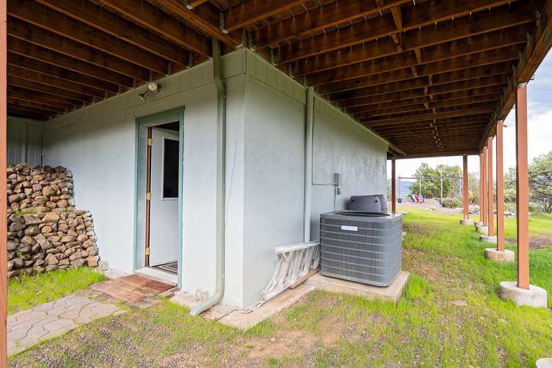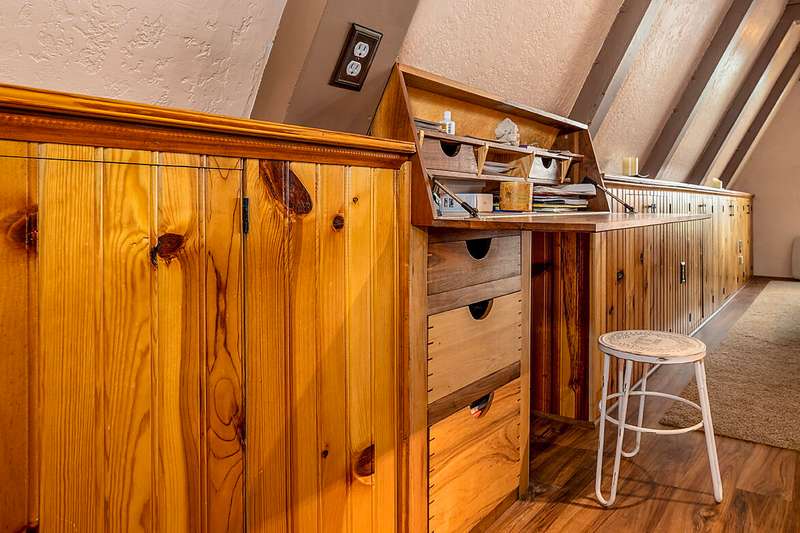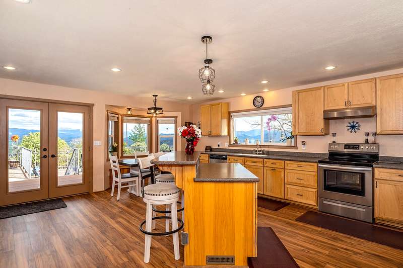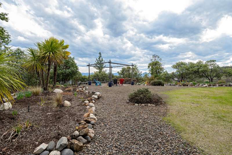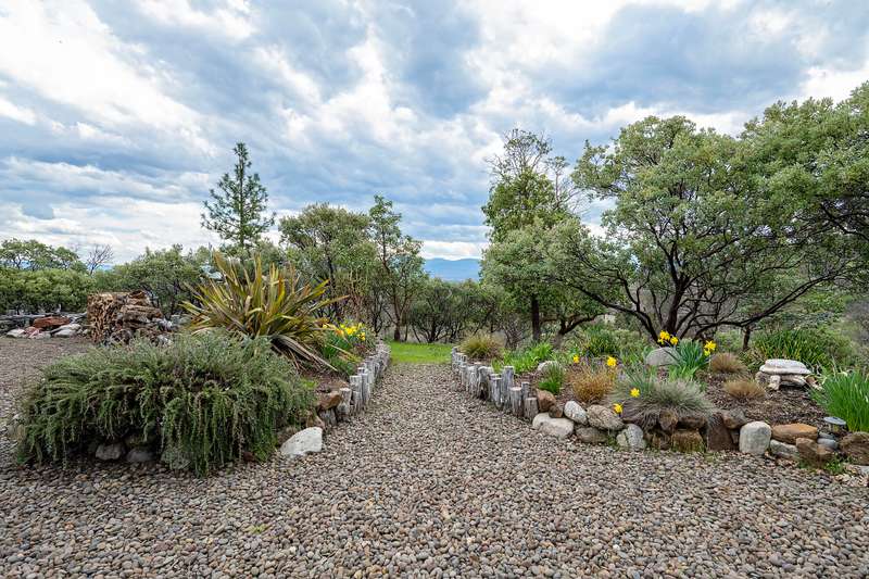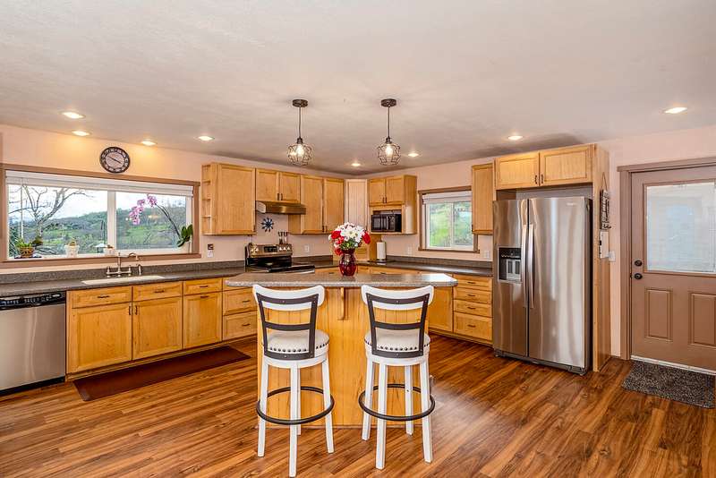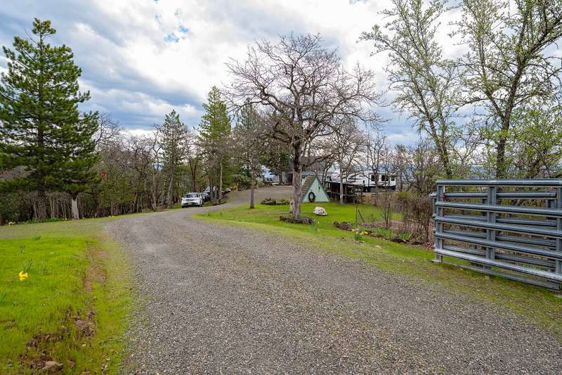COUNTRY SETTING CITY CLOSE! This well maintained Gem is sitting on over 5 beautiful acres with stunning views from the large wrap around porch. It's a dream A-FRAME home featuring 3 bedrooms, 2 baths plus 367 sqft of additional finished basement space (above ground) with exterior access. The open concept center island kitchen offers newer cabinetry, ample storage, a pantry and plantation blinds. Main level: living room with built in cabinets to maximize space, new certified wood stove, primary bedroom, bathroom & laundry room. Two bedrooms up the spiral staircase plus walk in attic (bonus room) and second bathroom. Freshly painted exterior in 2024, new hybrid water heater installed in 2024, workshop area in garage, chicken coop, RV parking, a variety of trees & a seasonal creek + endless possibilities. You've got to tour this one of a kind, property in person.