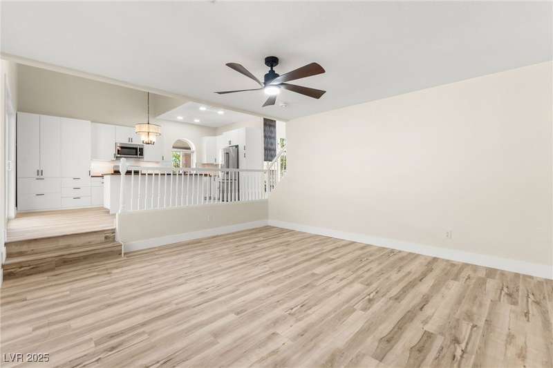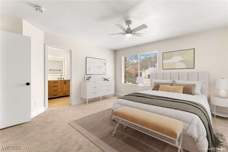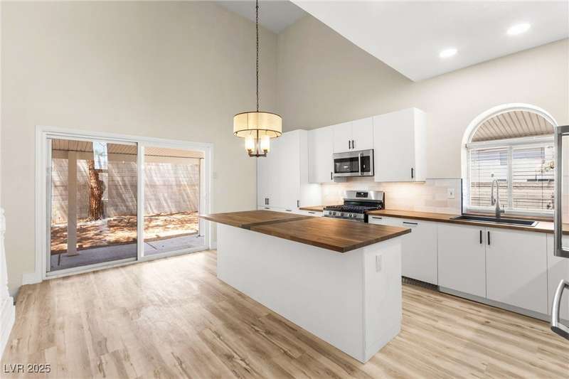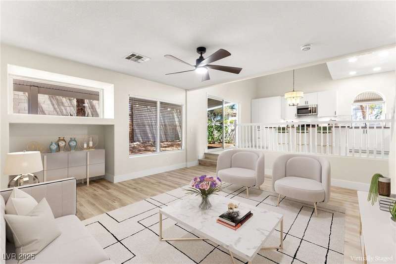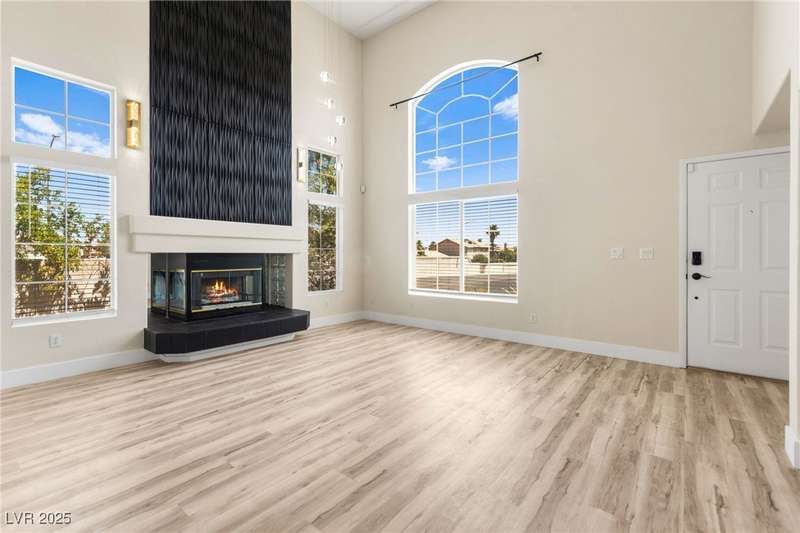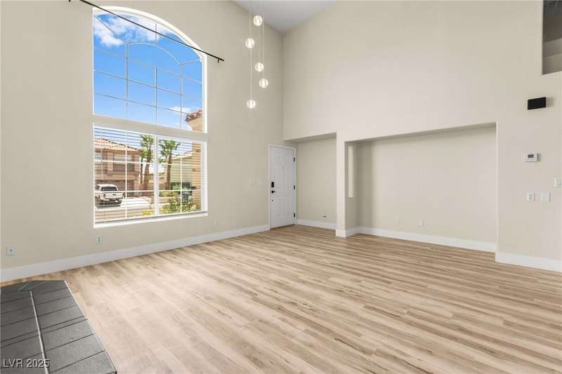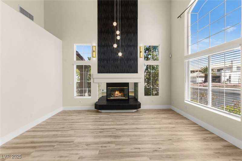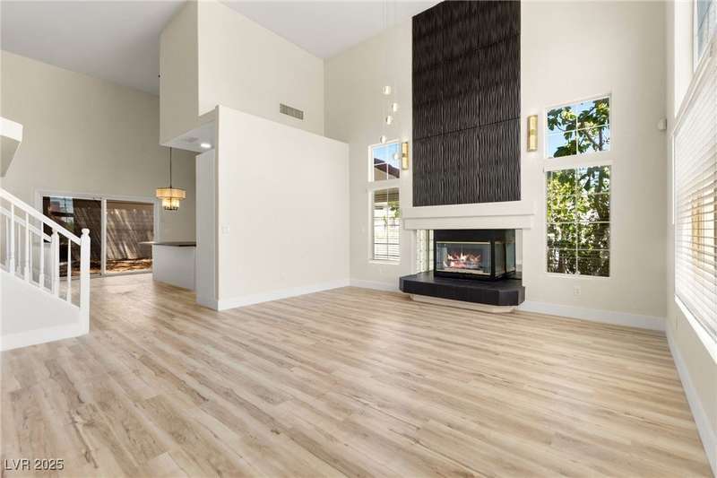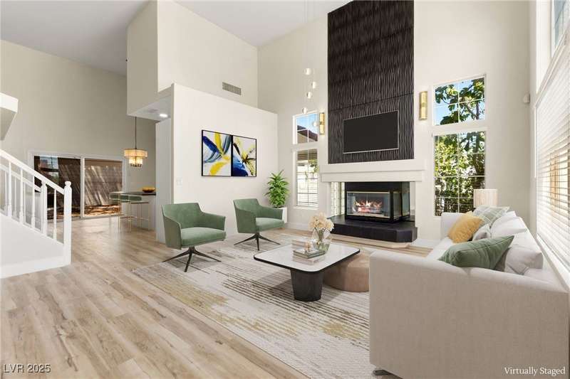 In the heart of Centennial Hills, this freshly renovated 3-bedroom, 3-bathroom home delivers modern elegance with a warm, inviting feel. Equipped with a 240V charger for your electric vehicles, soaring vaulted ceilings create a sense of openness, while expansive windows draw in natural light that dances across the rich wood flooring. The living room centers around a beautiful fireplace, adding warmth and charm. The open-concept living area flows seamlessly into a reimagined kitchen featuring crisp cabinetry and upgraded hardware. Upstairs, the primary suite is a private retreat, offering a generous walk-in closet and an upgraded shower. Two additional provide comfort for family, guests, or a dedicated home office. The low-maintenance backyard offers a perfect balance of relaxation and function, with space for outdoor dining, a small garden, or a quiet lounge area to enjoy Vegas golden sunsets. Do not miss the opportunity to make this your home!