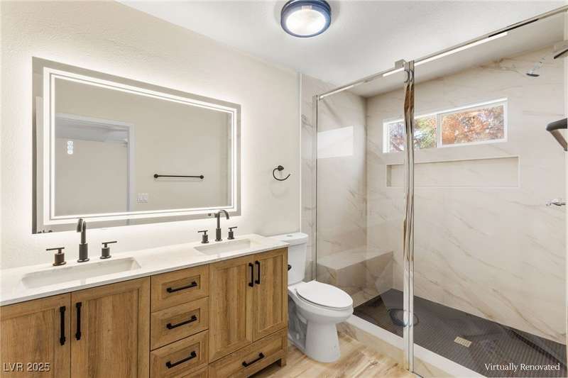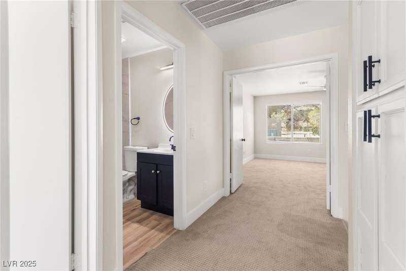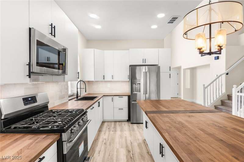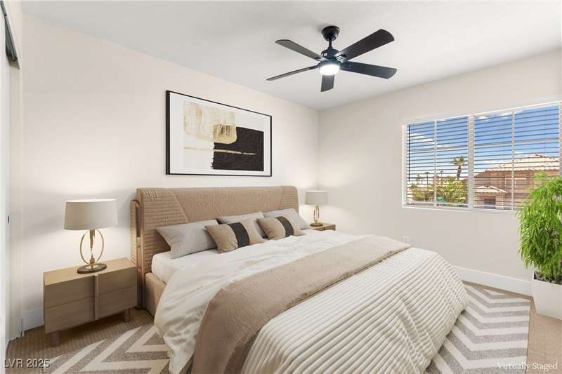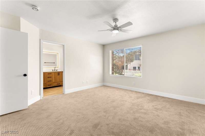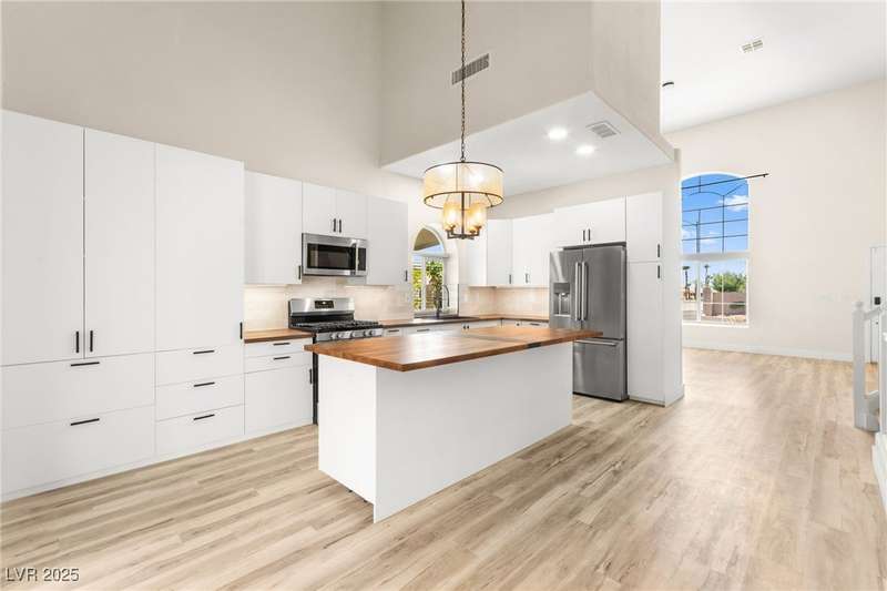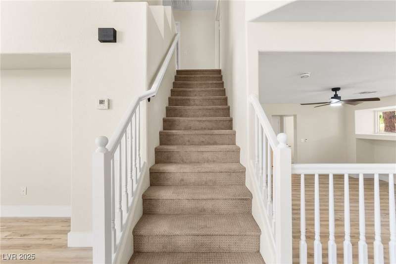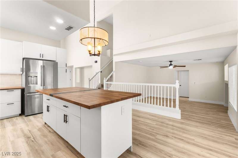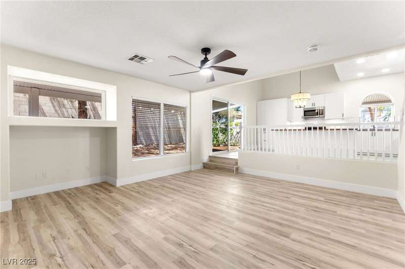 In the heart of Centennial Hills, this freshly renovated 3-bedroom, 3-bathroom home delivers modern elegance with a warm, inviting feel. Equipped with a 240V charger for your electric vehicles, soaring vaulted ceilings create a sense of openness, while expansive windows draw in natural light that dances across the rich wood flooring. The living room centers around a beautiful fireplace, adding warmth and charm. The open-concept living area flows seamlessly into a reimagined kitchen featuring crisp cabinetry and upgraded hardware. Upstairs, the primary suite is a private retreat, offering a generous walk-in closet and an upgraded shower. Two additional provide comfort for family, guests, or a dedicated home office. The low-maintenance backyard offers a perfect balance of relaxation and function, with space for outdoor dining, a small garden, or a quiet lounge area to enjoy Vegas golden sunsets. Do not miss the opportunity to make this your home!