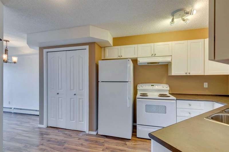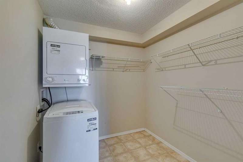 Welcome to this bright and well-appointed 1-bedroom, 1-bathroom condo in the highly sought-after community of Panorama Hills. Perfectly located with quick access to Stoney Trail and just minutes from shopping, dining, and countless amenities, this home combines convenience with comfort. Inside, you’ll love the open-concept layout featuring a spacious living and dining area with room for a full-size table and large sofa setup. The kitchen offers a clean white appliance package, good amount of cabinetry, a pantry, and plenty of counter and cupboard space. Laminate flooring throughout— carpet only in bedroom — adds a modern touch and makes for easy maintenance. Step out to your private covered balcony, the perfect spot to relax or entertain. The bedroom features a huge walk-in closet and a large window for natural light. A nearby 4-piece bathroom includes a fully tiled tub/shower and ample vanity storage. Additional perks include in-suite laundry with extra storage space, an assigned surface parking stall with power, and lots of visitor parking. The building is professionally managed with beautifully landscaped grounds and reasonable condo fees ($319/month including all utilities!). Enjoy the best of north Calgary living with nearby groceries, coffee shops, fitness centers, restaurants, and services. You’re less than 10 minutes from Beacon Hill, Creekside, and Country Hills shopping centers, and under 15 minutes to CrossIron Mills Mall. Whether you’re a first-time buyer, downsizer, or investor, this home offers affordable, low-maintenance living in a fantastic location.