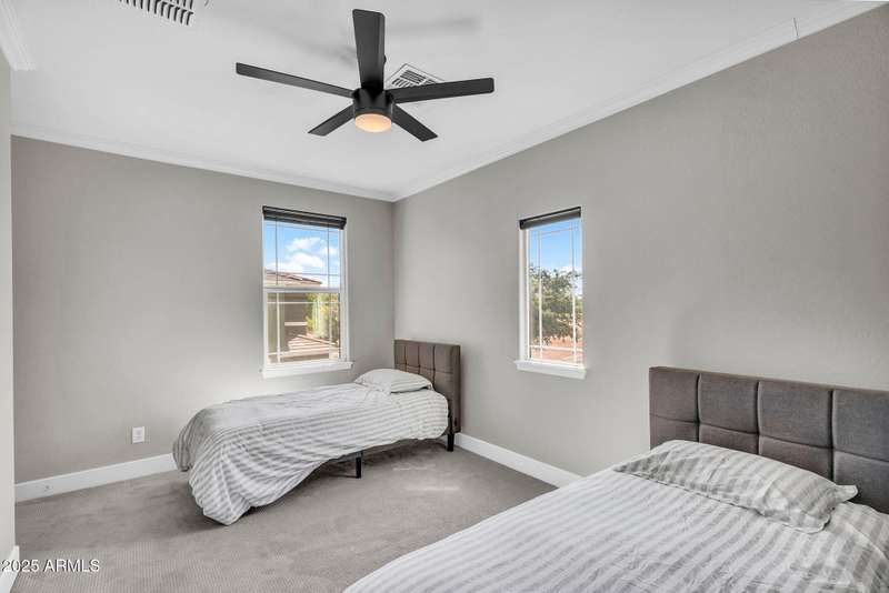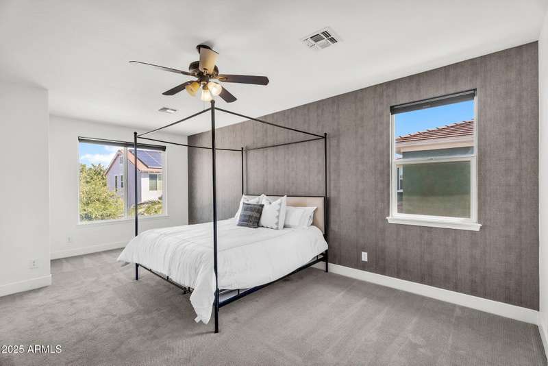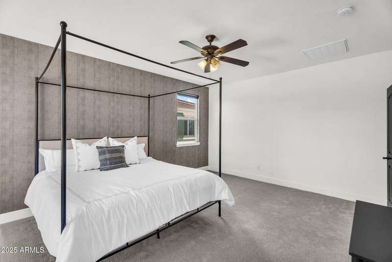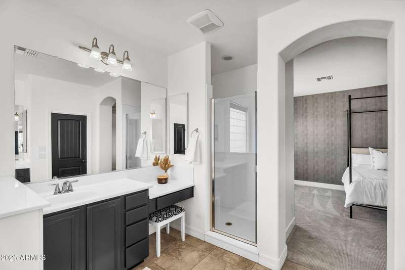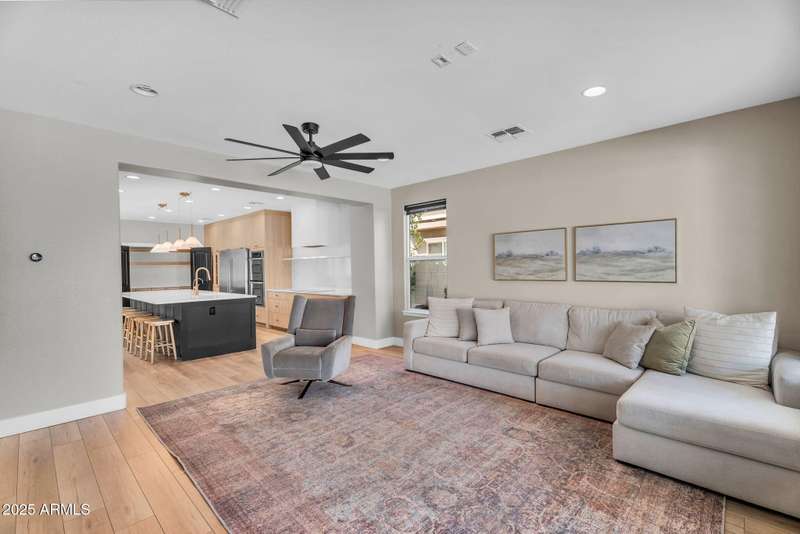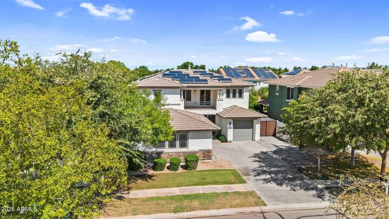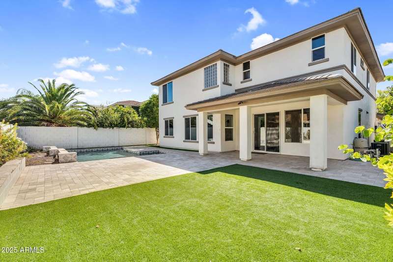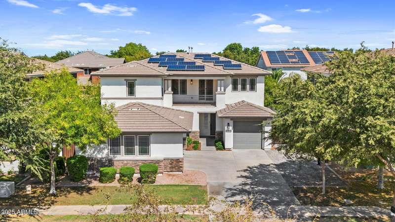 Welcome to your dream home in the heart of the highly sought-after Lakeview Trails North at Morrison Ranch community! This beautifully upgraded 5-bedroom, 3-bathroom residence offers 3,242 sq. ft. of thoughtfully designed living space and an expansive loft, perfect for a growing family or entertaining guests. Step inside and fall in love with the fully renovated kitchen — a true showstopper featuring modern cabinetry, high-end stainless steel appliances, gorgeous quartz countertops, and a large center island ideal for meal prep or casual dining. Whether you're hosting a dinner party or enjoying a quiet night in, this kitchen will be the heart of your home. The open-concept layout boasts a bright and airy great room, a large flex area (great for an office or entertainment space) a full bedroom and bathroom on the main floor (perfect for guests), and a versatile upstairs loft that can be used as a game room, home gym, or media space. The spacious primary suite includes a luxurious en-suite bath with dual vanities, a soaking tub, and a generous walk-in closet. Step outside to your own private backyard oasis complete with a sparkling swimming pool, a lush green lawn, and a covered patio perfect for relaxing or entertaining. Whether you're enjoying a summer BBQ, hosting pool parties, or simply unwinding under the Arizona sky, this backyard is built for year-round enjoyment. All of this located in the picturesque Morrison Ranch neighborhood, known for its tree-lined streets, white picket fences, and charming greenbelts. You'll love the community feel, proximity to top-rated schools, and easy access to shopping, dining, and major freeways. Don't miss the opportunity to own this move-in ready gem in one of Gilbert's most desirable neighborhoods!