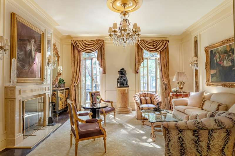 The townhouse is in excellent condition and offers coveted space for today's post covid lifestyle including 6 master bedrooms,7 baths, 4 powder rooms, two drawing rooms, library, formal dining room, two kitchens, media room, gym, home office, staff quarters, and outdoor space comprised of a terrace off the lower level, a charming walled terrace off the kitchen and a sunny top floor terrace with iconic views of Central Park, the Central Park West skyline, as well as sweeping south views over the city.