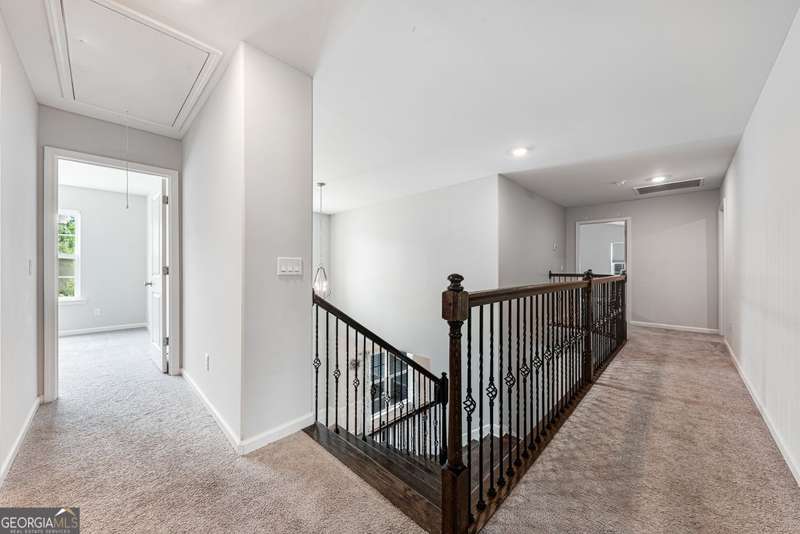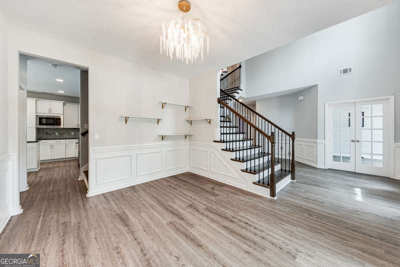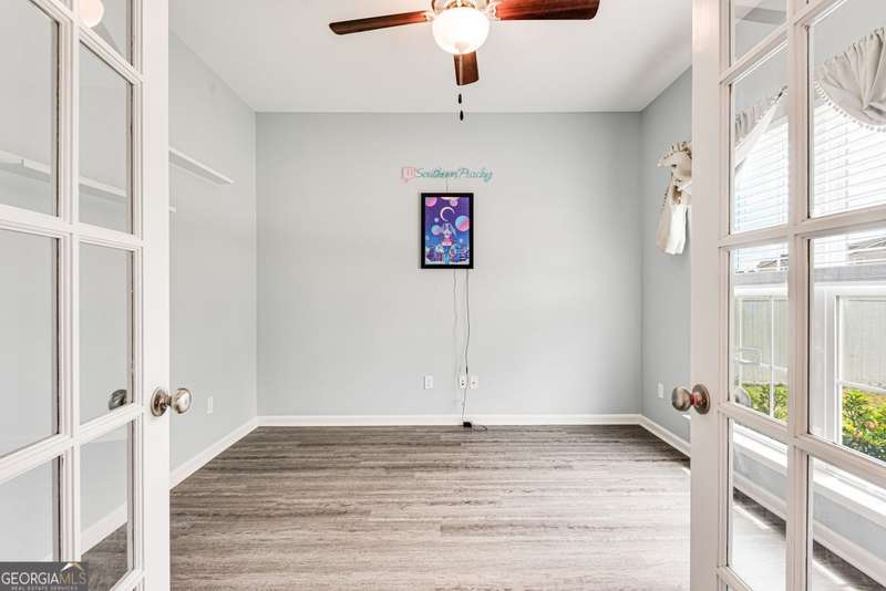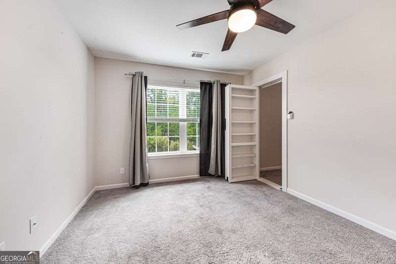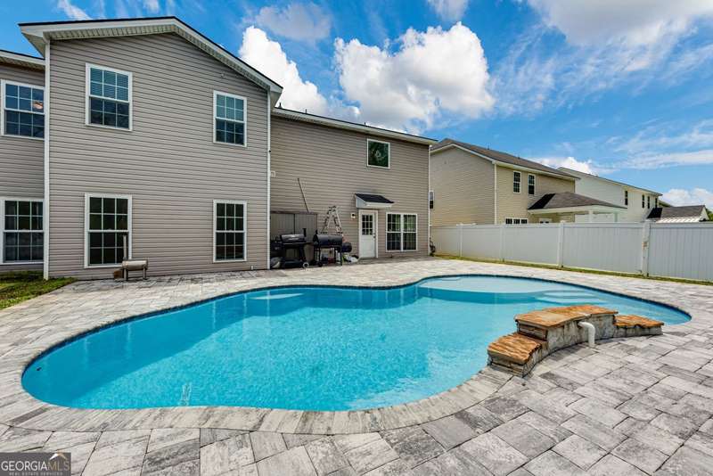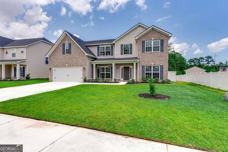 Come into this beautifully crafted 5-bedroom, 3-bathroom home and be greeted by a grand two-story foyer, elegant wood tread staircase with wrought iron spindles, and detailed wainscoting along the stairs and formal dining room-creating a warm, welcoming impression from the start. The main floor offers flexibility and function with a dedicated office, a full bathroom, and a guest bedroom-perfect for visitors or multi-generational living. At the heart of the home is a chef-inspired kitchen featuring an island, high-top breakfast bar, double ovens, an oversized walk-in pantry, and a sunny breakfast nook-perfect for entertaining or everyday living. Upstairs, you'll find the HUGE primary suite, which includes either three separate closets or two closets and a bonus room that can serve as a nursery, private office, or dressing room. A hidden room-tucked away behind a bookshelf-adds a unique touch of character and function. The spa-like en-suite bath features dual vanities, a soaking tub, a large tiled shower, and a private water closet. Laundry is conveniently located upstairs as well with the other bedrooms. Come outside to your private backyard oasis with a beautiful cobblestone pool and tranquil fountain feature-ideal for relaxing or entertaining. Located within walking distance to Camden County High School, just 5.8 miles to Kings Bay Naval Base, and only 37.5 miles to FLETC-this home combines elegance, space, and unbeatable convenience! Settlers Hammock neighborhood does also have its own pool as well as basketball hoop, play ground, and sidewalks!