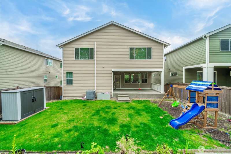 Beautifully designed multi-level home in a vibrant community with parks, walking trails, and a dog park. This 4-bed, 3-bath home offers 3 flexible living areas, including a loft perfect for a home office or playroom. The 2nd floor guest suite with 3/4 bath is ideal for multi-generational living. Enjoy a modern kitchen with new appliances, a large island, and walk-in pantry. Outside, relax on the covered patio or enjoy the spacious backyard with a play set, shed, and garden beds. Comfort, space, and community - this home has it all!