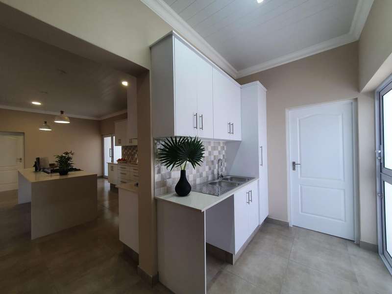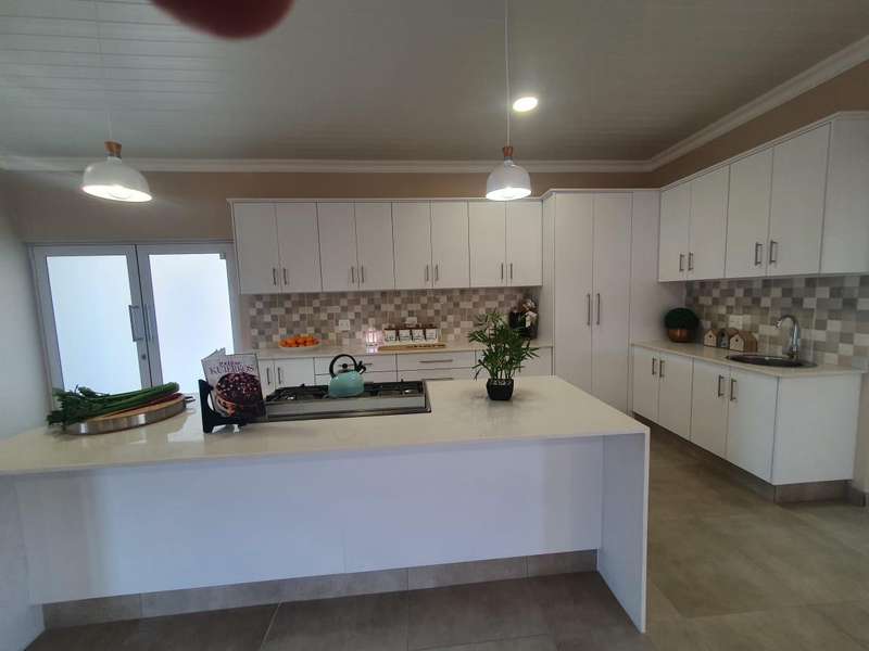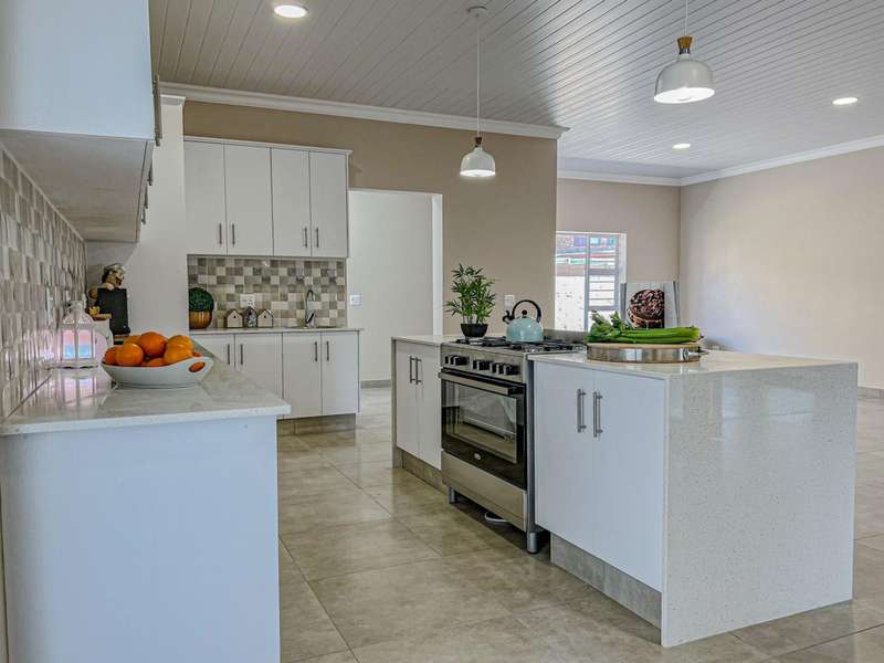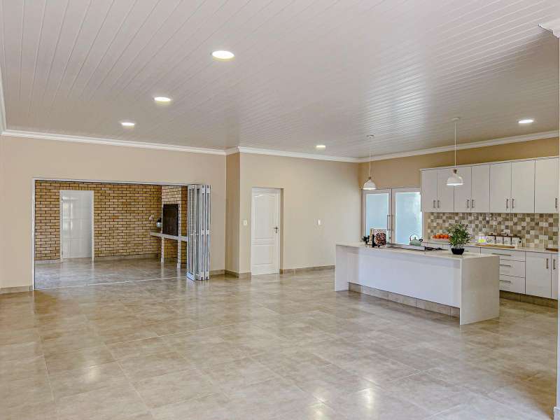 A welcome entrance leading to a spacious open plan lounge, dining, braai room living areas for wonderful entertaining and a modern beautiful kitchen with high-quality finishes throughout plus a scullery. Generously sized 4 bedrooms from one en-suite and huge walk-in cupboard/dressing room. A sunny enclosed patio for entertaining for a huge crowd. The cherry on top is 2 double remote garages and enough parking. Menkenkop is a serene and upmarket neighbourhood located in Hartenbos. The area is characterised by its tranquil atmosphere and offers residents a peaceful living environment. The neighbourhood provides easy access to the N2 highway, Menkenkop is approximately 42 kilometers from George Airport, making it a quick 30-minute drive. For entertainment, residents can enjoy the nearby Blue Flag beaches in Hartenbos, a significant attraction in the area. Call me for a viewing!