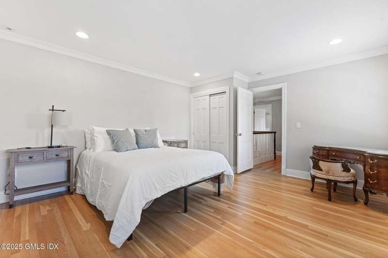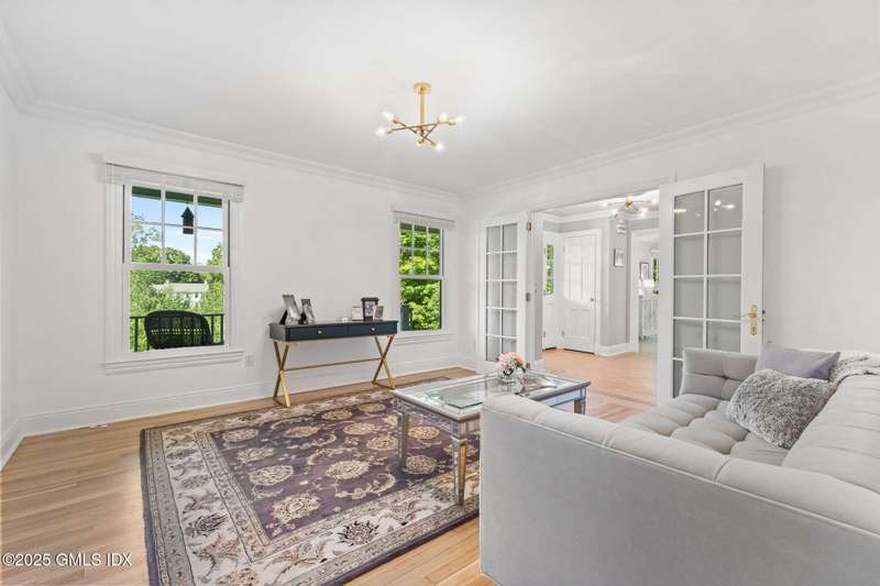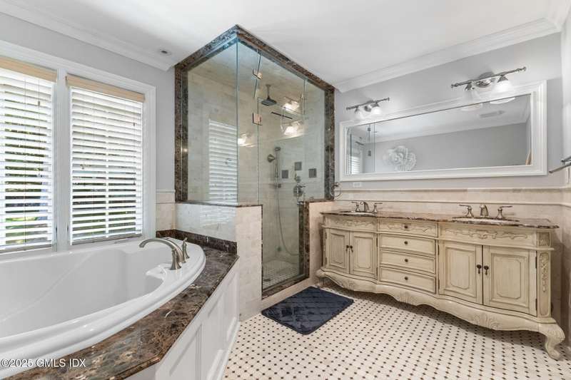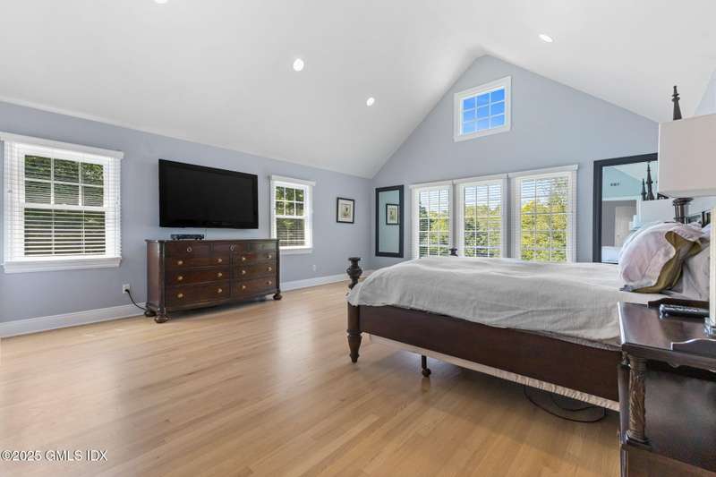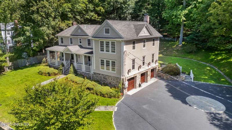 This exceptional 5-bedroom, 4-bath center hall colonial underwent a complete renovation in 2007 and was thoughtfully updated again in 2023. Privately set back on over 2.5 acres abutting Mianus River Park, this home offers a rare combination of tranquility and convenience, located just minutes from downtown Greenwich and under an hour to NYC. Enter through a gracious double-height foyer from the charming covered front porch. The main level features a generous living room and a gourmet kitchen that opens to a stunning, three-exposure family room with direct access to the outdoors. The incredible primary suite boasts soaring cathedral ceilings, a luxurious spa-like bathroom, and a fabulous walk-in closet. Four additional well-proportioned bedrooms provide space and comfort for family and guests. With a Greenwich address and access to Stamford schools, this rare gem in a most sought-after location is truly a must-see! Square footage does not reflect lower level mudroom, finished room and