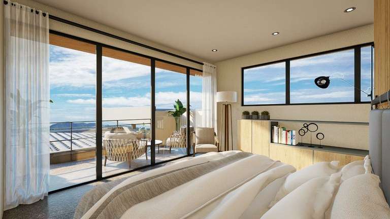 The gourmet kitchen seamlessly connects to the dining and living areas through a timeless open-concept layout. In harmony with Senderos' 'Natural Modern' philosophy, the design ensures a fluid connection between indoor and outdoor living. Expansive windows and sliding glass doors open to generous terraces, an infinity-edge pool, sun deck, BBQ area, and more bringing the outdoors in and inviting relaxation at every turn.