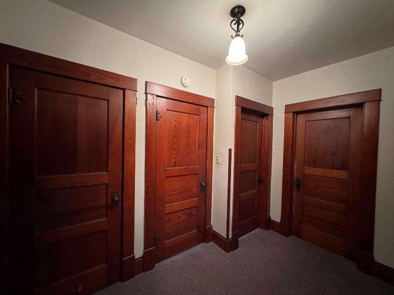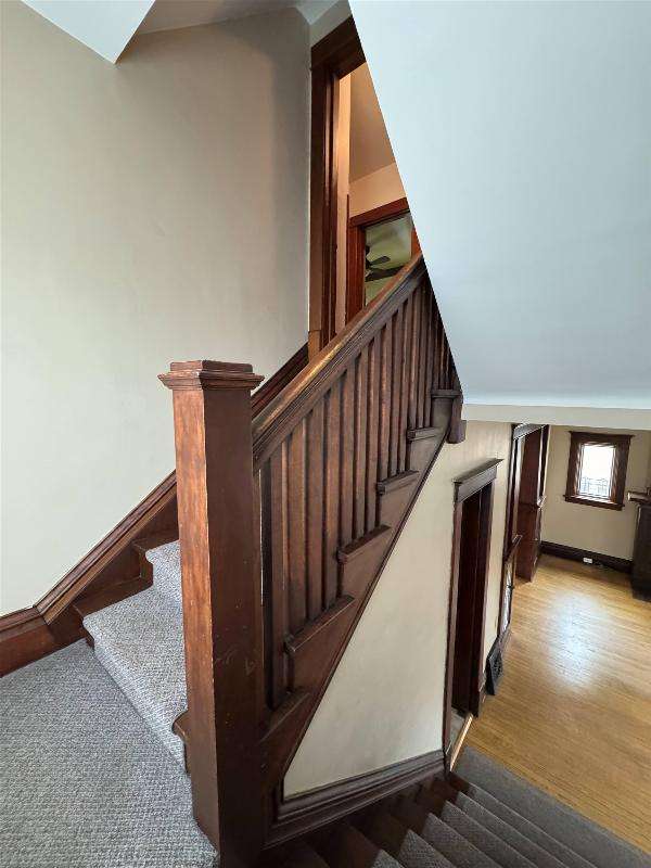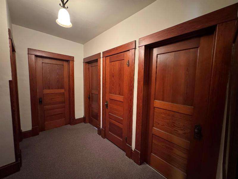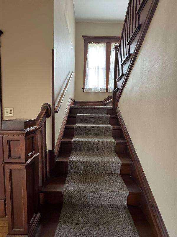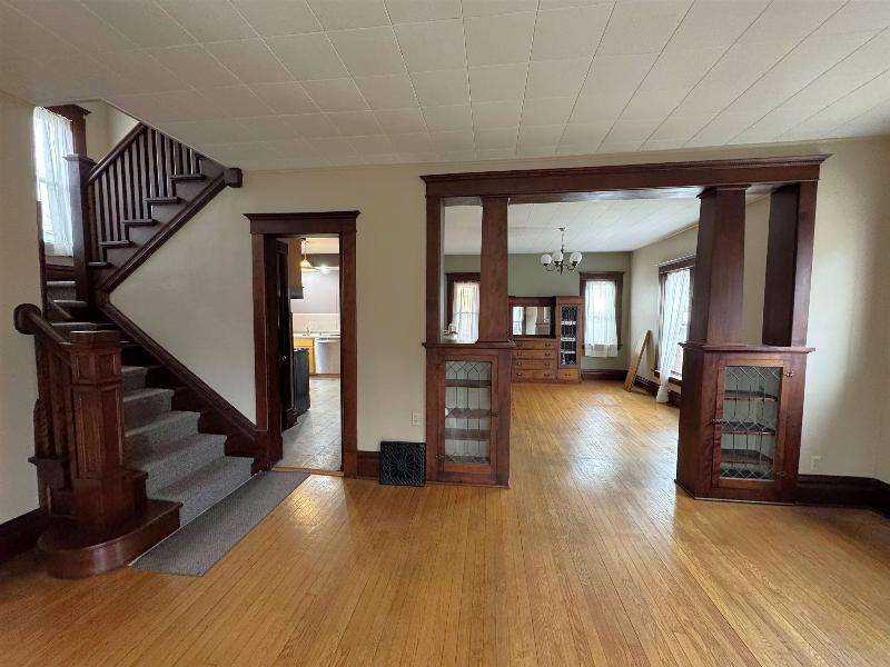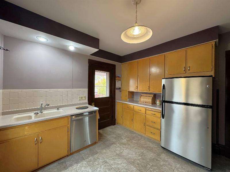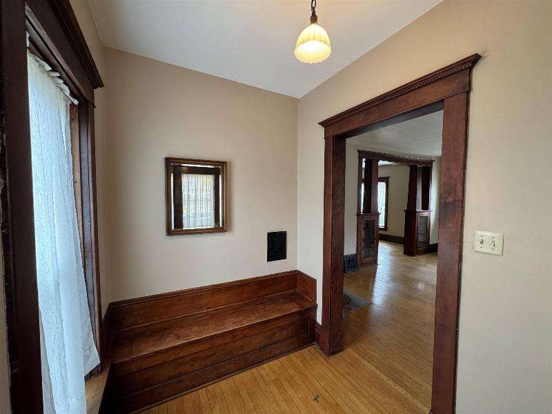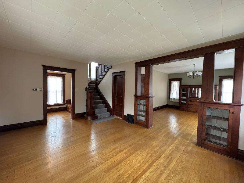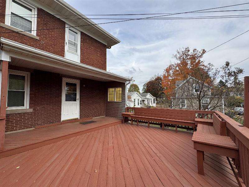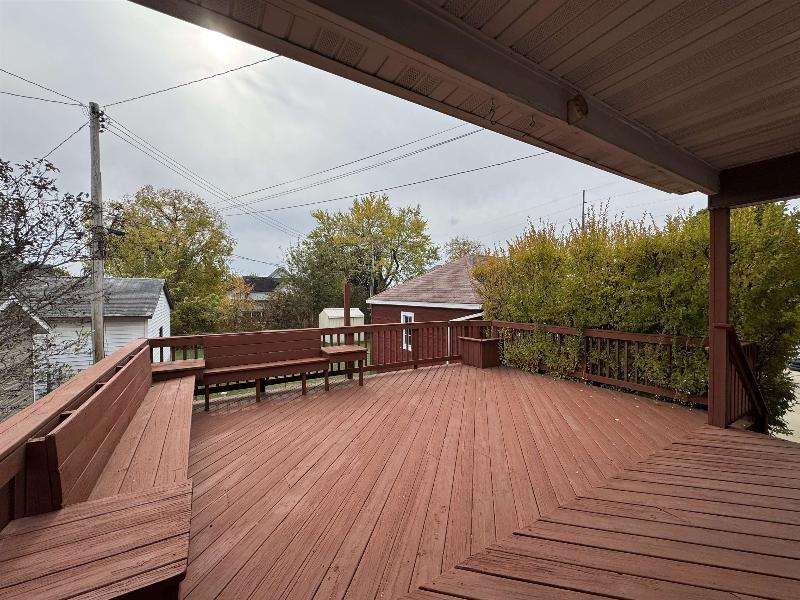 This 4-bedroom brick home has been owned by the same family for three decades. The property features original woodwork throughout, including wood floors and several built-ins. Upon entering the foyer, you'll be greeted with a built-in flip top storage bench. The living room contains a fireplace and leads to a dining area equipped with a built-in cabinet with leaded glass doors. In the kitchen you'll find ample cabinet space and a door that conveniently opens to the large deck, a great space for hosting gatherings. The upper level has four bedrooms; one does not have a closet. A walk-up attic offers potential for various purposes such as an office, playroom, or additional bedroom. The full basement provides extra storage space, and there is also a detached 2-car garage.