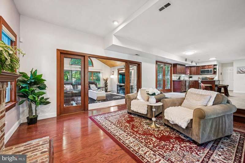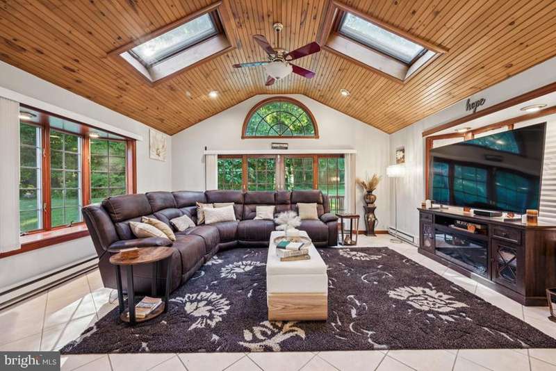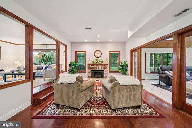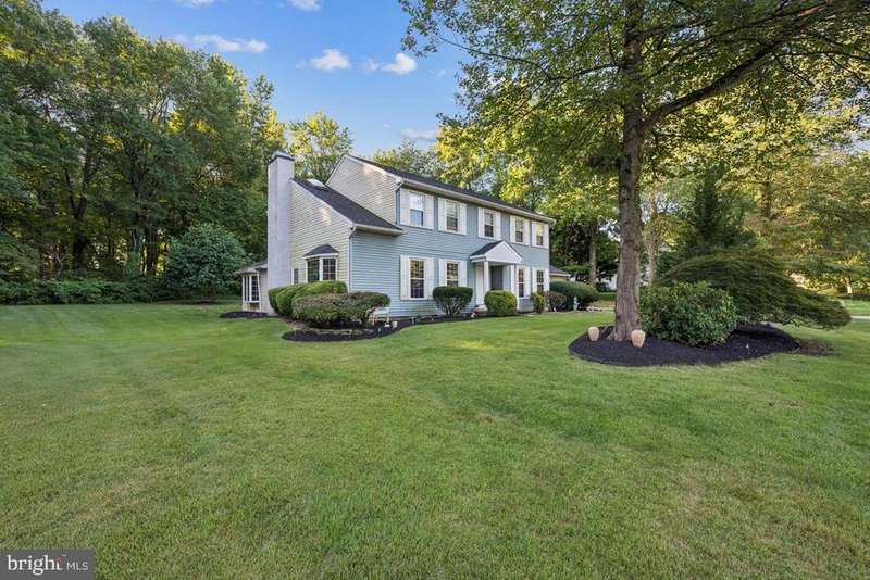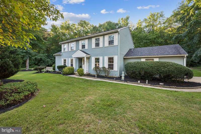 Welcome to this spacious 4-bedroom, 2.5-bath home, perfectly situated on an extra-large lot with a serene, park-like setting. The inviting entryway opens to beautiful tile floors and leads into the heart of the home. The updated kitchen boasts modern cabinetry, granite countertops, stainless steel appliances, and a large island ideal for everyday living and entertaining. The living areas flow seamlessly together, including a bright enclosed sunroom for year-round enjoyment, a cozy family room with a brick-front fireplace, and a welcoming living room. The formal dining room, currently used as a bedroom, can easily be converted back. An updated half bath, convenient laundry room, and two-car side-entry garage add to the homes functionality. The primary suite features a generous walk-in closet and a luxurious full bath with skylight, double vanity, separate shower, and relaxing Jacuzzi-style tub. Additional bedrooms offer plenty of space for family, guests, or a home office. Step outside to a large backyard deck, perfect for dining, entertaining, or simply enjoying the private quiet setting of the oversized lot. All this while being just minutes from major routes including I-295, NJ Turnpike, and the River Line.