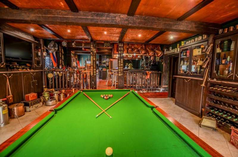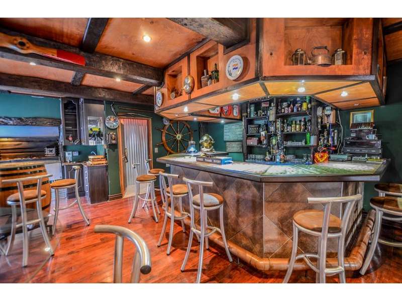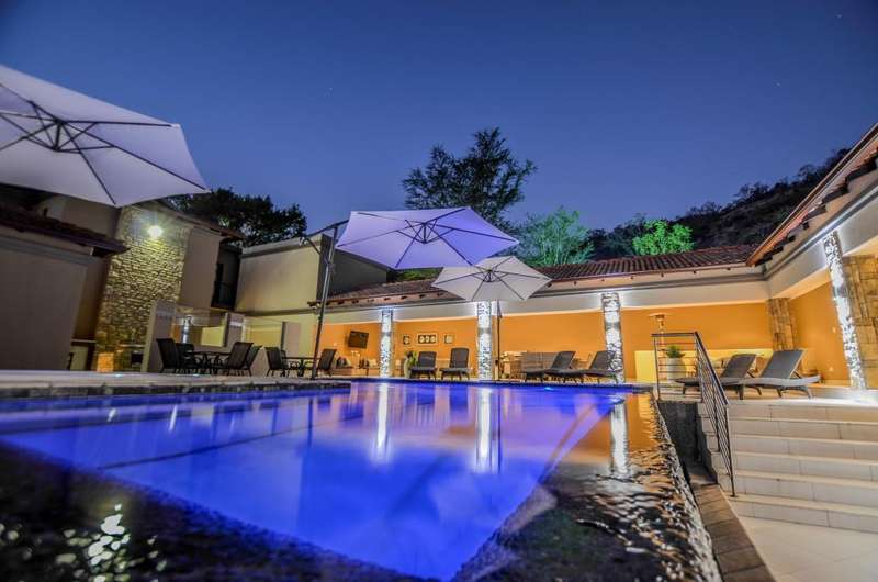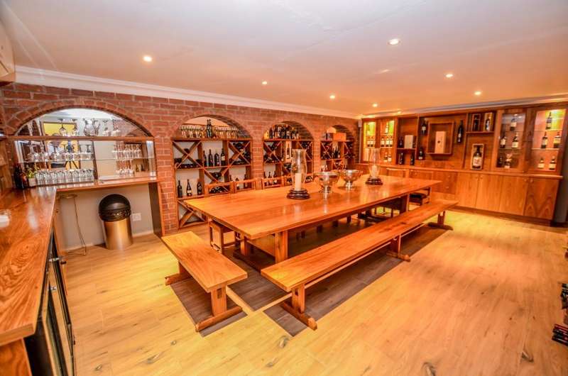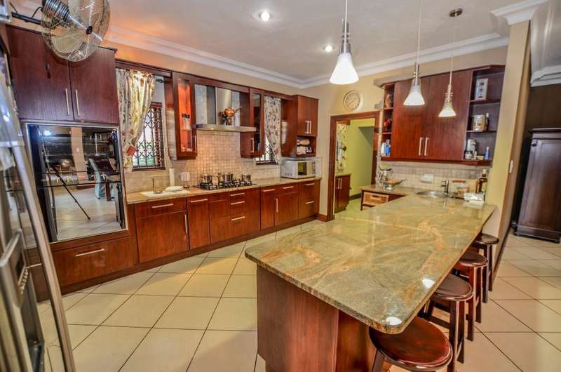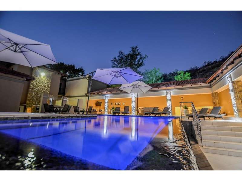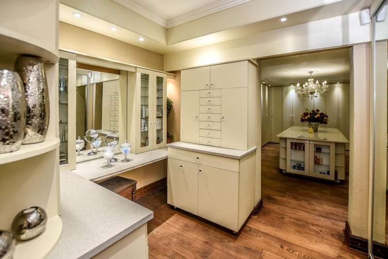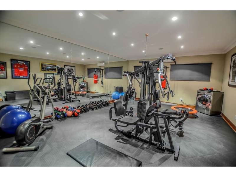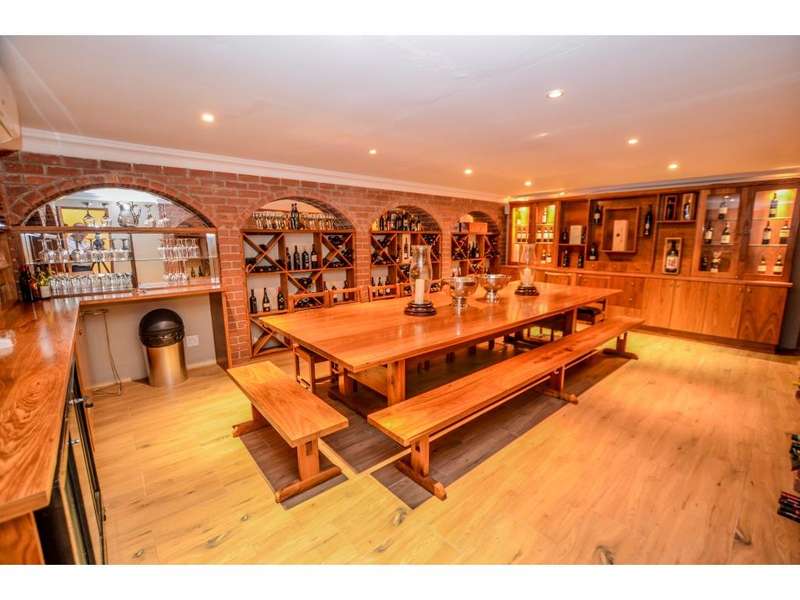 Nestled in the heart of the La Roi Estate on 4,1ha of virgin bush with panoramic views and roaming game, this stately mansion is designed with luxury, comfort and entertainment in mind. Graced with modern finishes throughout extra spacious living areas, 6 sunny bedrooms, air conditioned wine room and home gym. The gourmet kitchen boasts walk in refrigerator / freezer and custom granite tops allows for culinary pleasure. A magnificent 8 seater cinema room, feature pub, garaging for 10 cars and domestic facilities are beautifully complimented by a secure tiled inner courtyard with second swimming pool, large covered patio and built in braai/boma.